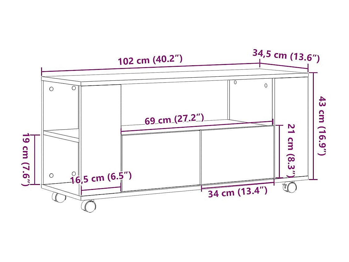 Elli Tv-meubel 102x34,5x43 cm bewerkt hout sonoma eikenkleurig