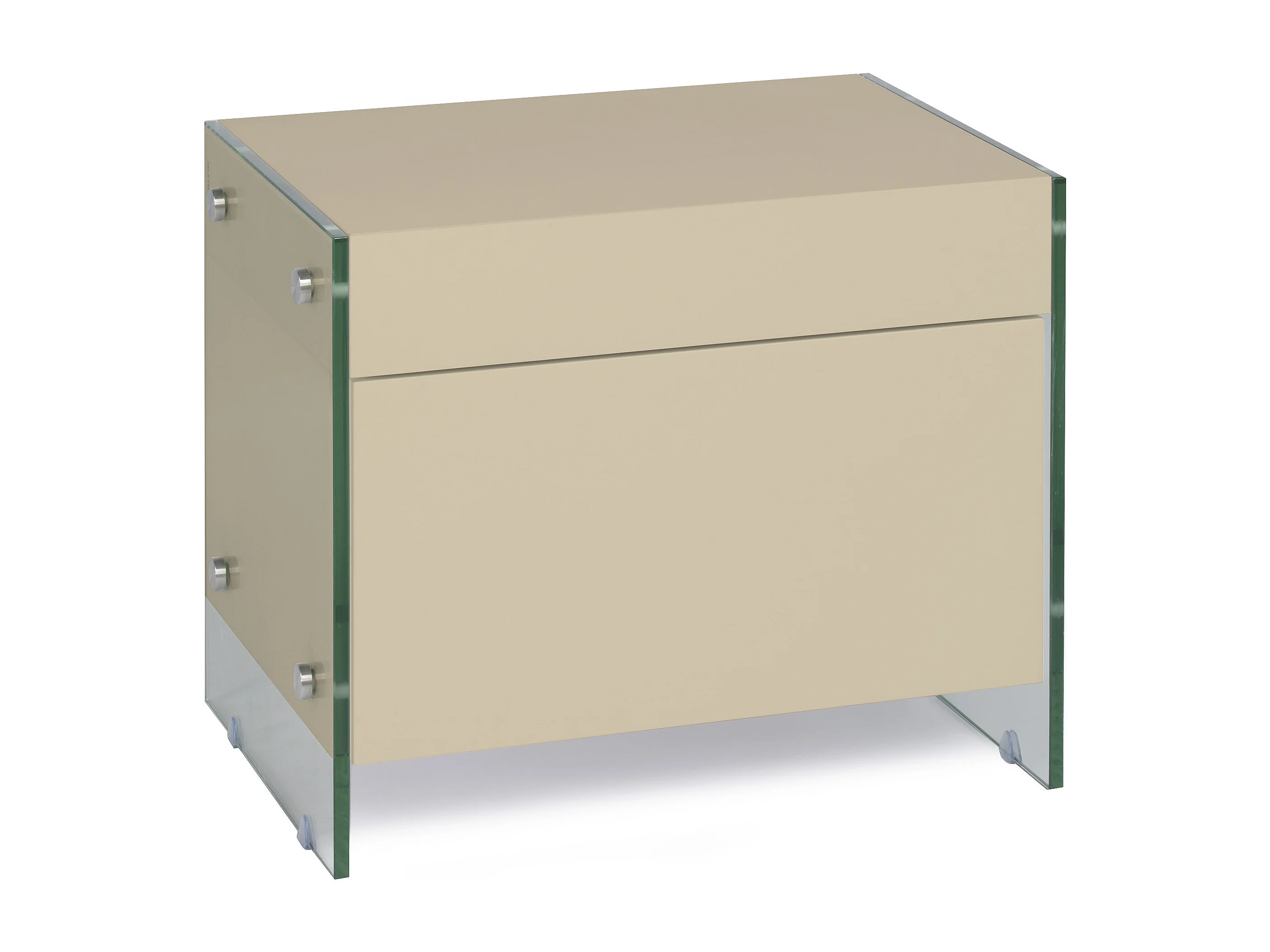 Elly nachtkastje met 1 lade in crèmegelakt hout en gehard glas