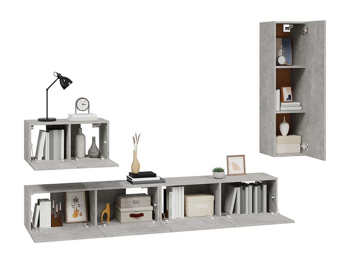 Elwin 4-delige Tv-meubelset bewerkt hout betongrijs