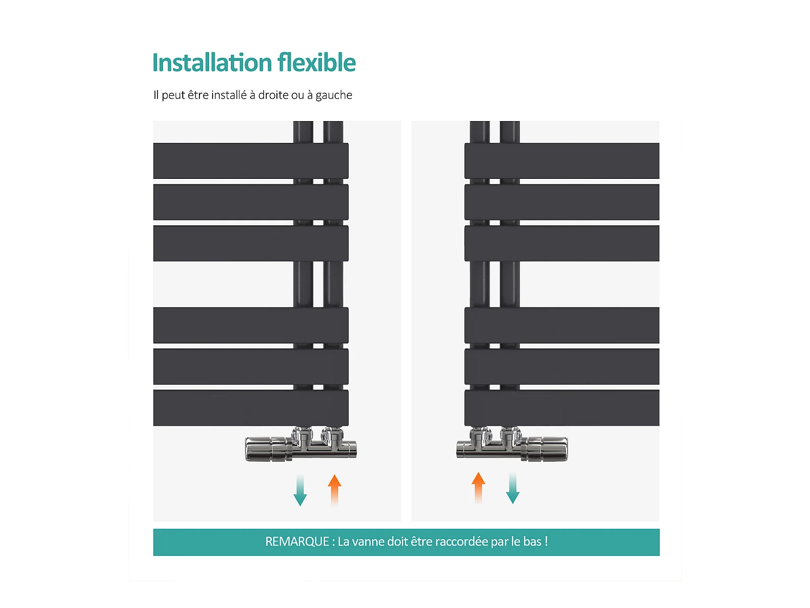 EMKE Handdoekradiator met Warm Water, Plat Paneel, Zijdelingse Aansluiting, Antraciet 1320x600mm 798W