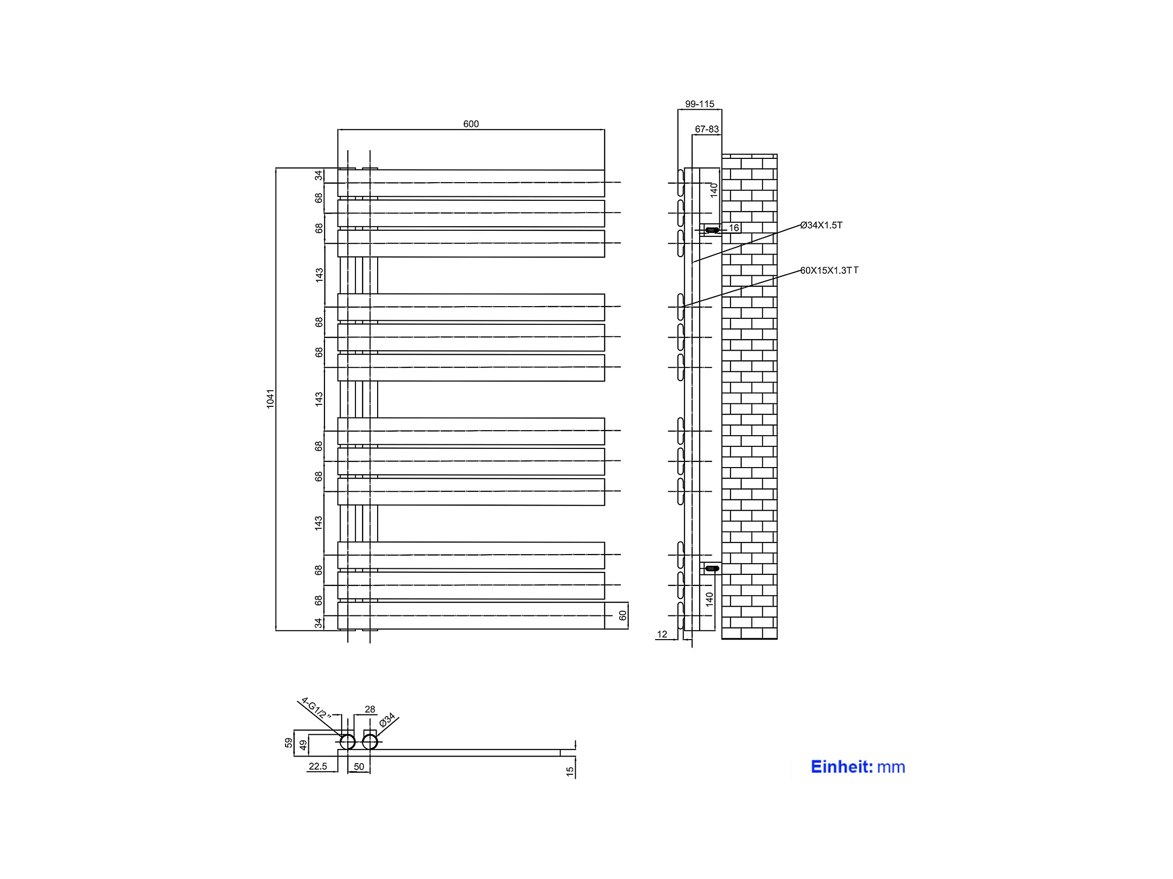 EMKE Plat Handdoekradiator met Warm Water, Zijdelingse Aansluiting, Antraciet, 1041x500mm, 529W