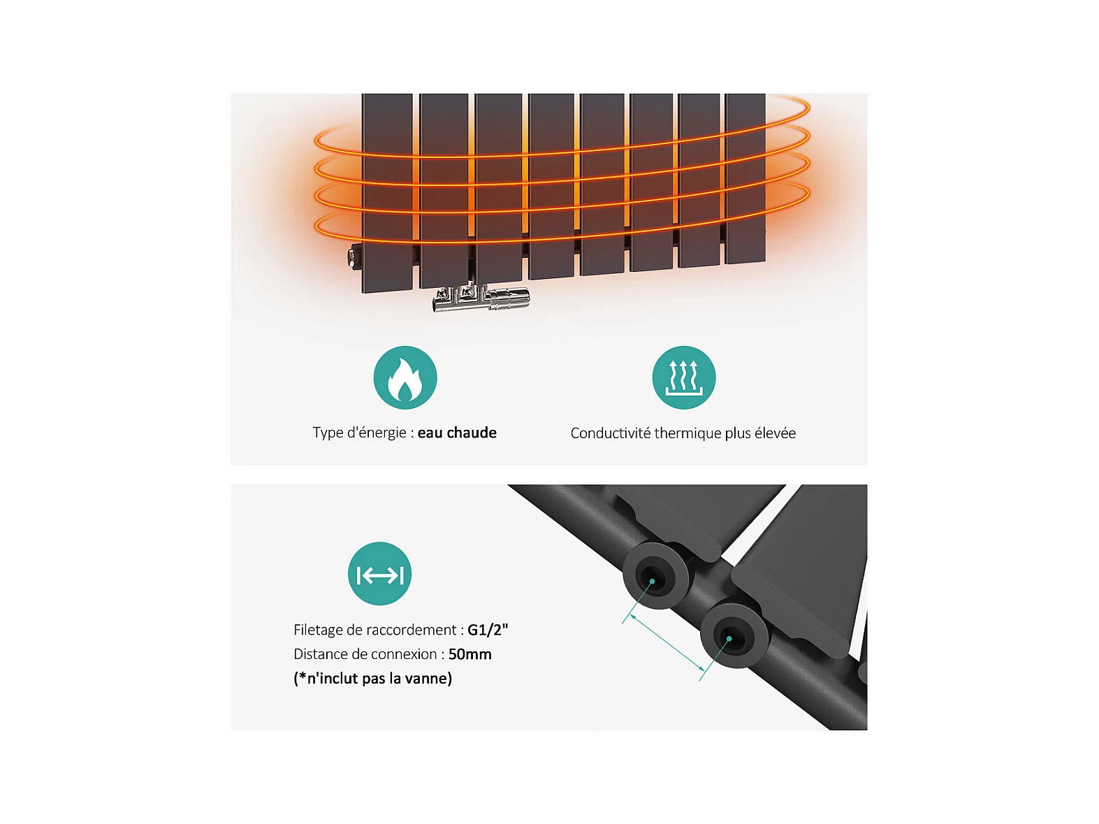 EMKE Handdoekradiator Warm Water, Plat Paneel, Handdoekradiator Zijdelingse Aansluiting, Antraciet 1320x500mm 661Watt