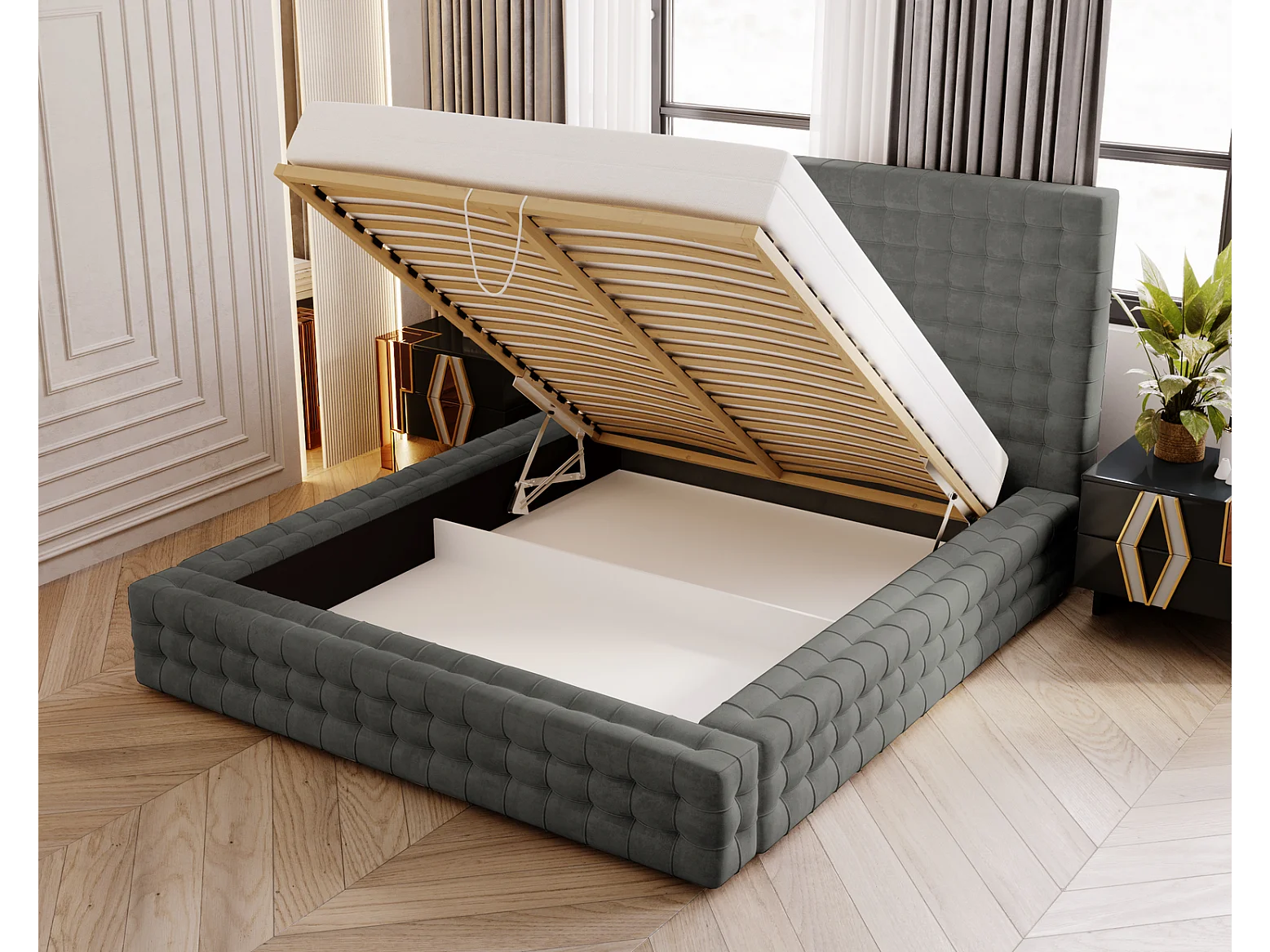 Emporius Arno gestoffeerd bed 180 x 200 cm - bed met opbergruimte en bedlade, fluwelen - bed 180x200 Donkergrijs (Elegance 18)