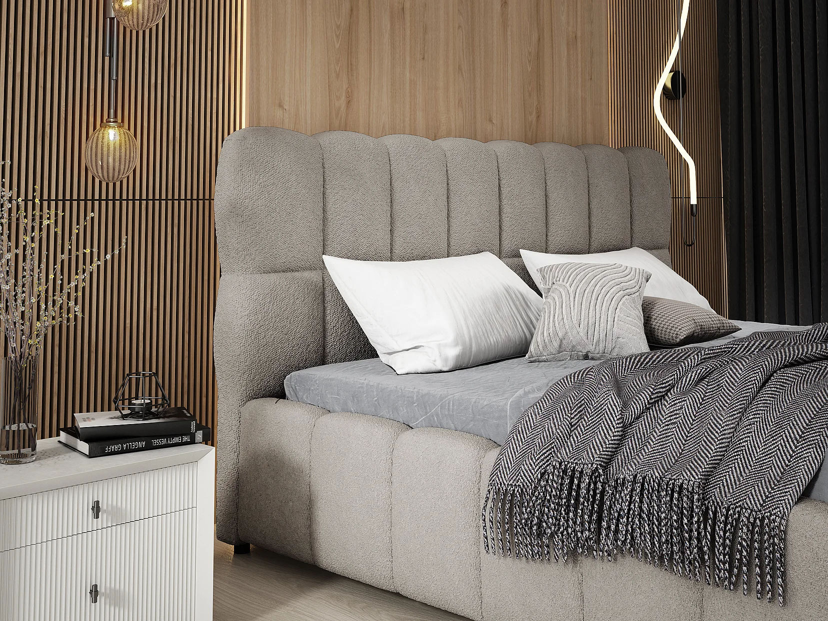 Emporius Avilla gestoffeerd bed bouclé 160 x 200 - tweepersoonsbed met opbergruimte, bed met bedlade - Lichtgrijs (Anthology 15)