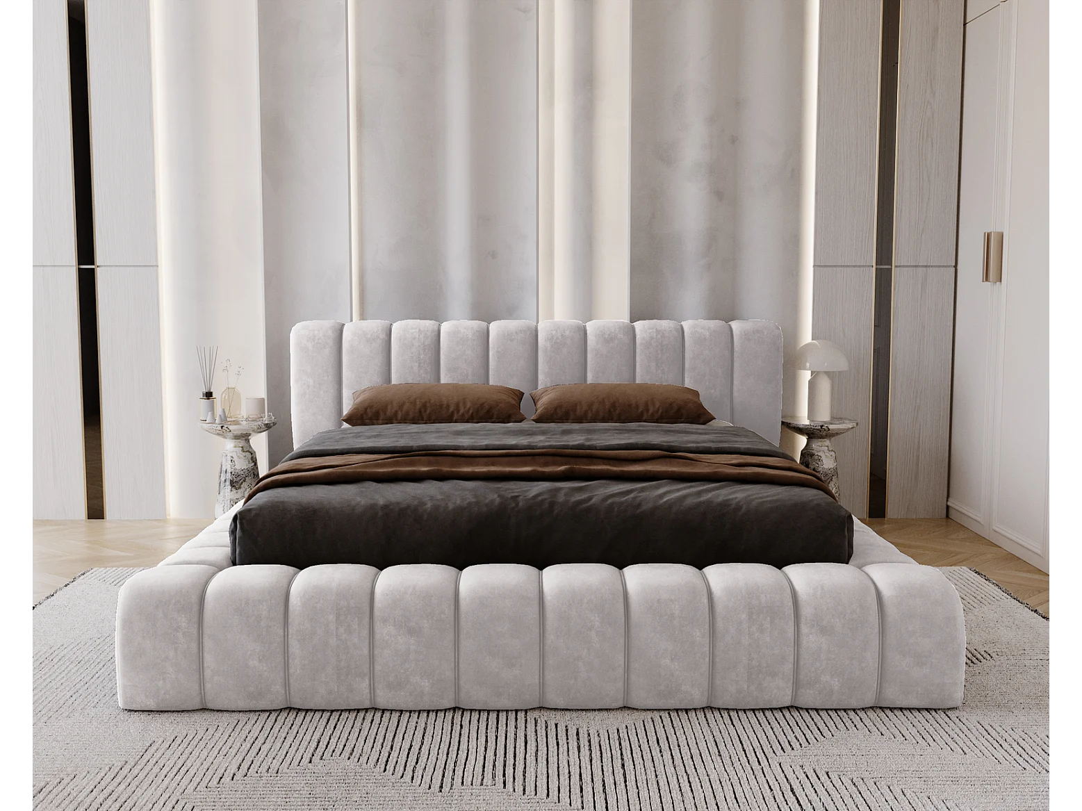Emporius bed 140x200 met opbergruimte, lattenbodem Como - tweepersoonsbed, dik schuim, fluwelen - Lichtgrijs (Whisper 16)