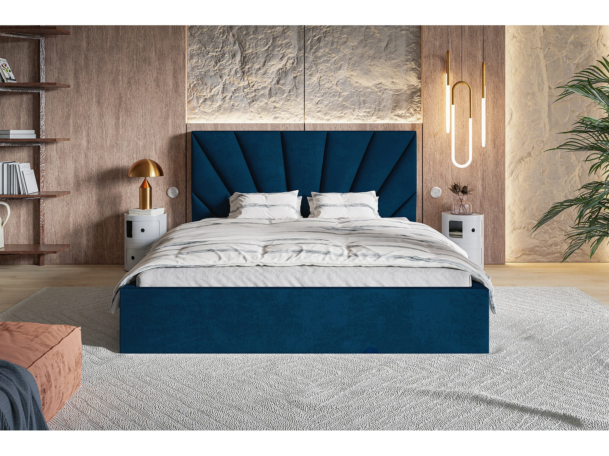 Tweepersoonsbed 160 x 200 Aris met opbergruimte - metalen lattenbodem, Blauw (Kronos 09)