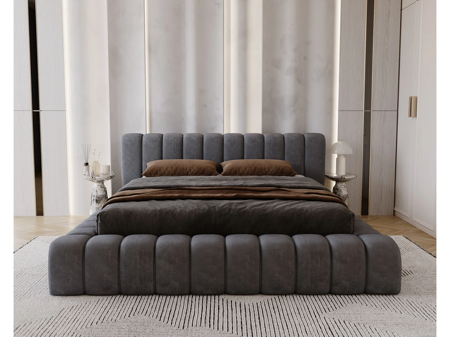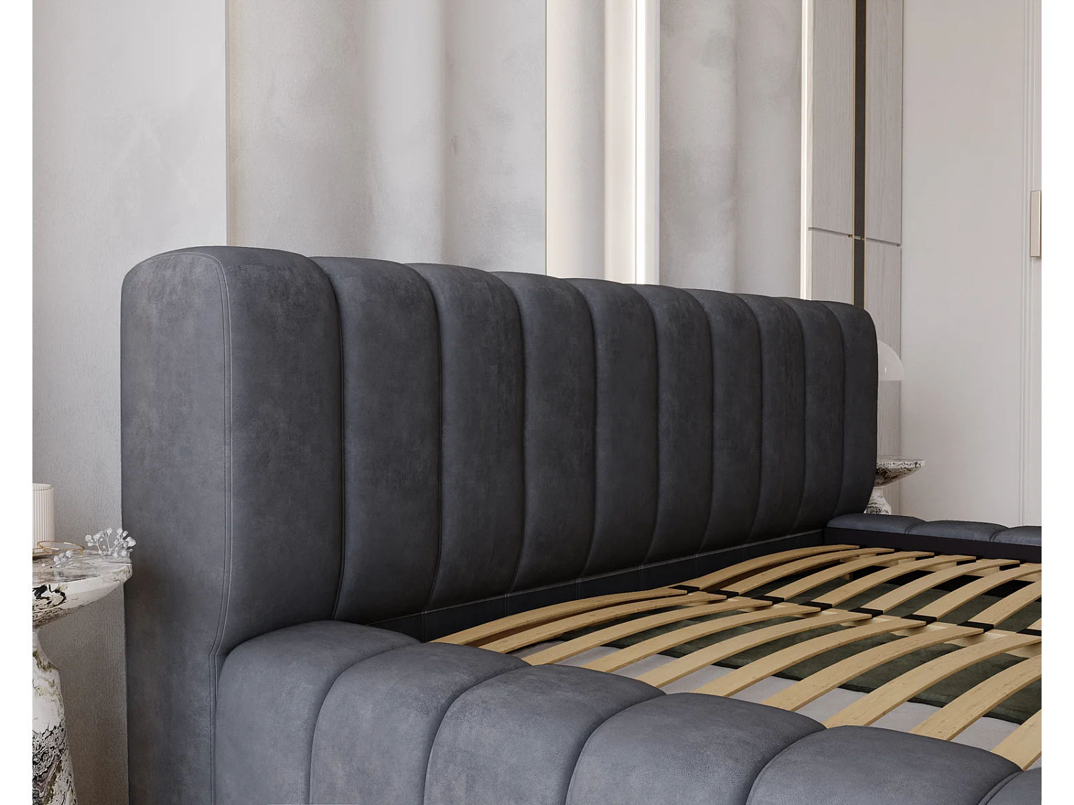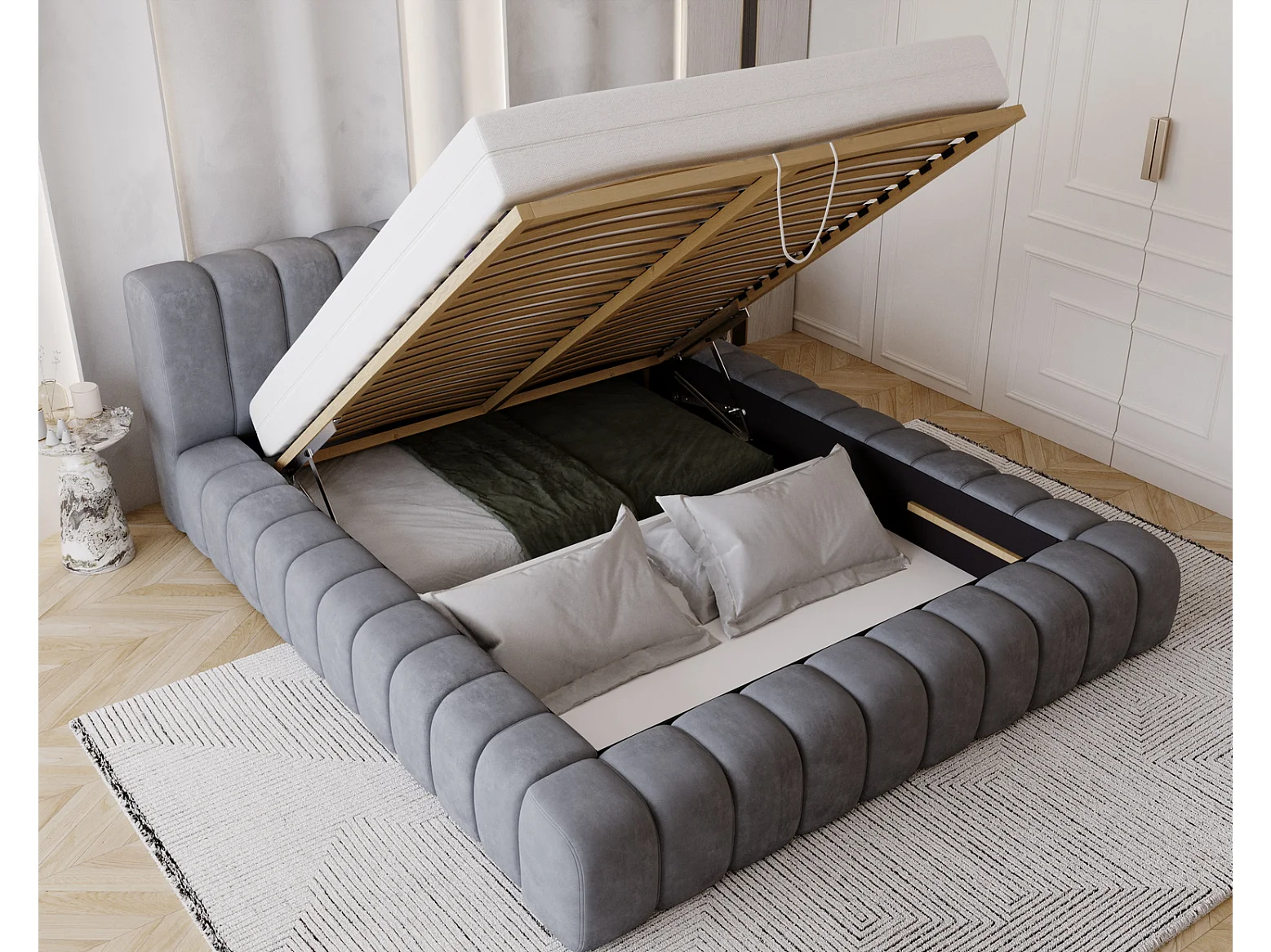 Emporius bed 180x200 met opbergruimte, lattenbodem Como - tweepersoonsbed, dik schuim, fluwelen - Donkergrijs (Whisper 15)