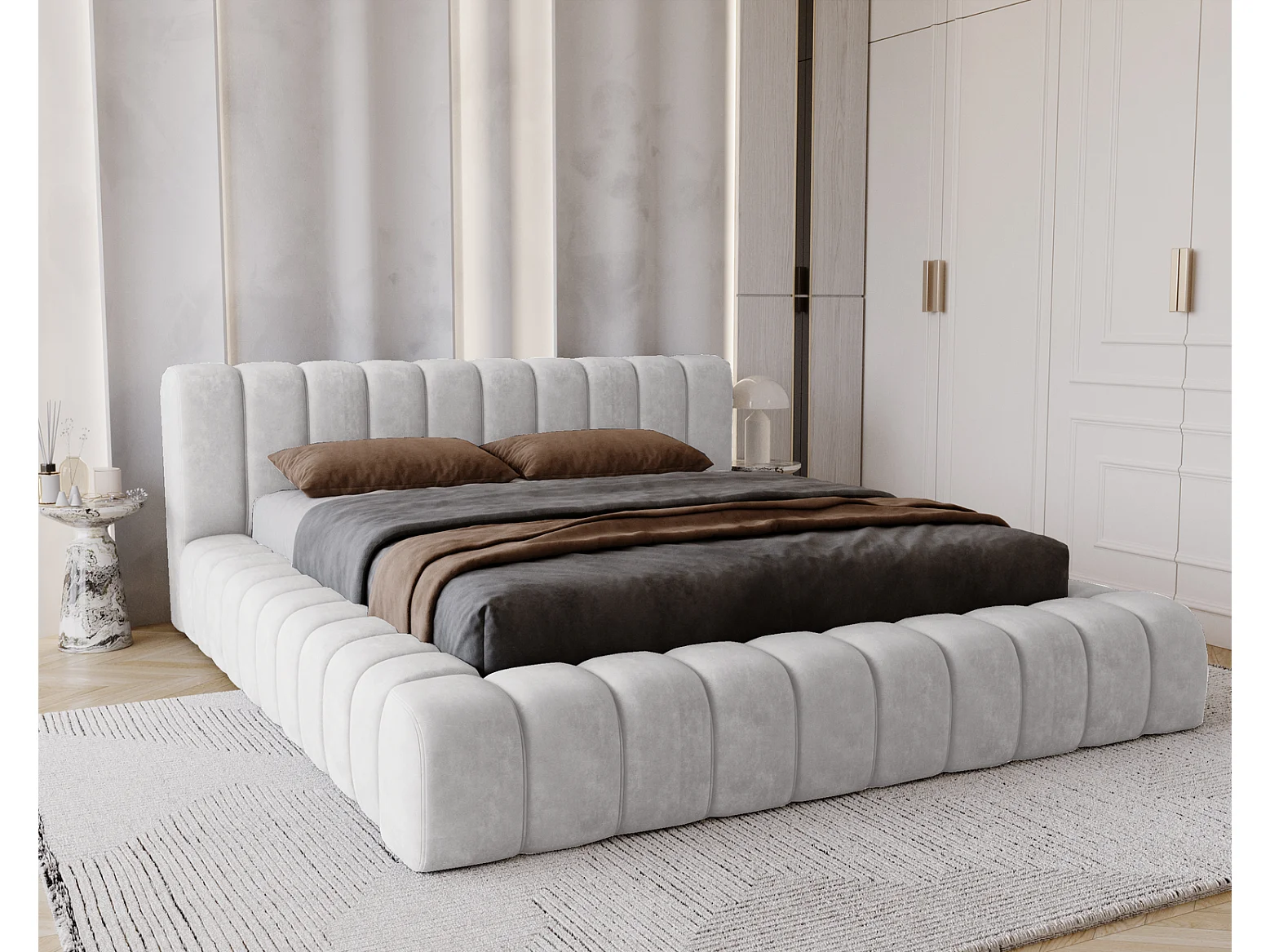 Emporius bed 180x200 met opbergruimte, lattenbodem Como - tweepersoonsbed, dik schuim, fluwelen - Lichtgrijs (Whisper 16)