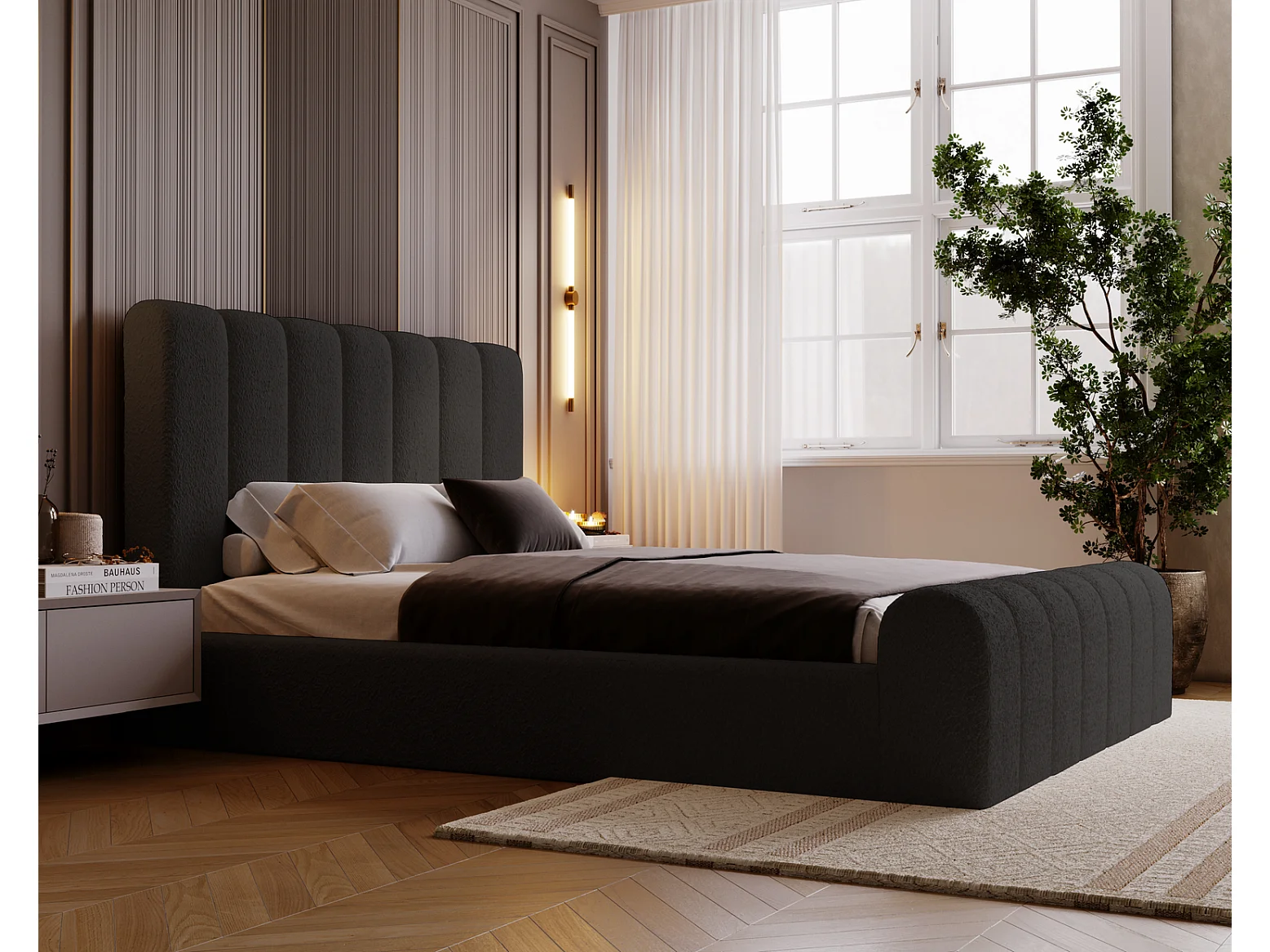 Emporius bed bouclé 160x200 Valetta - Gestoffeerd bed met opbergruimte, luxe bed met lattenbodem en bedlade - tweepersoonsbed 160x200 - Zwart (Anthology 19)