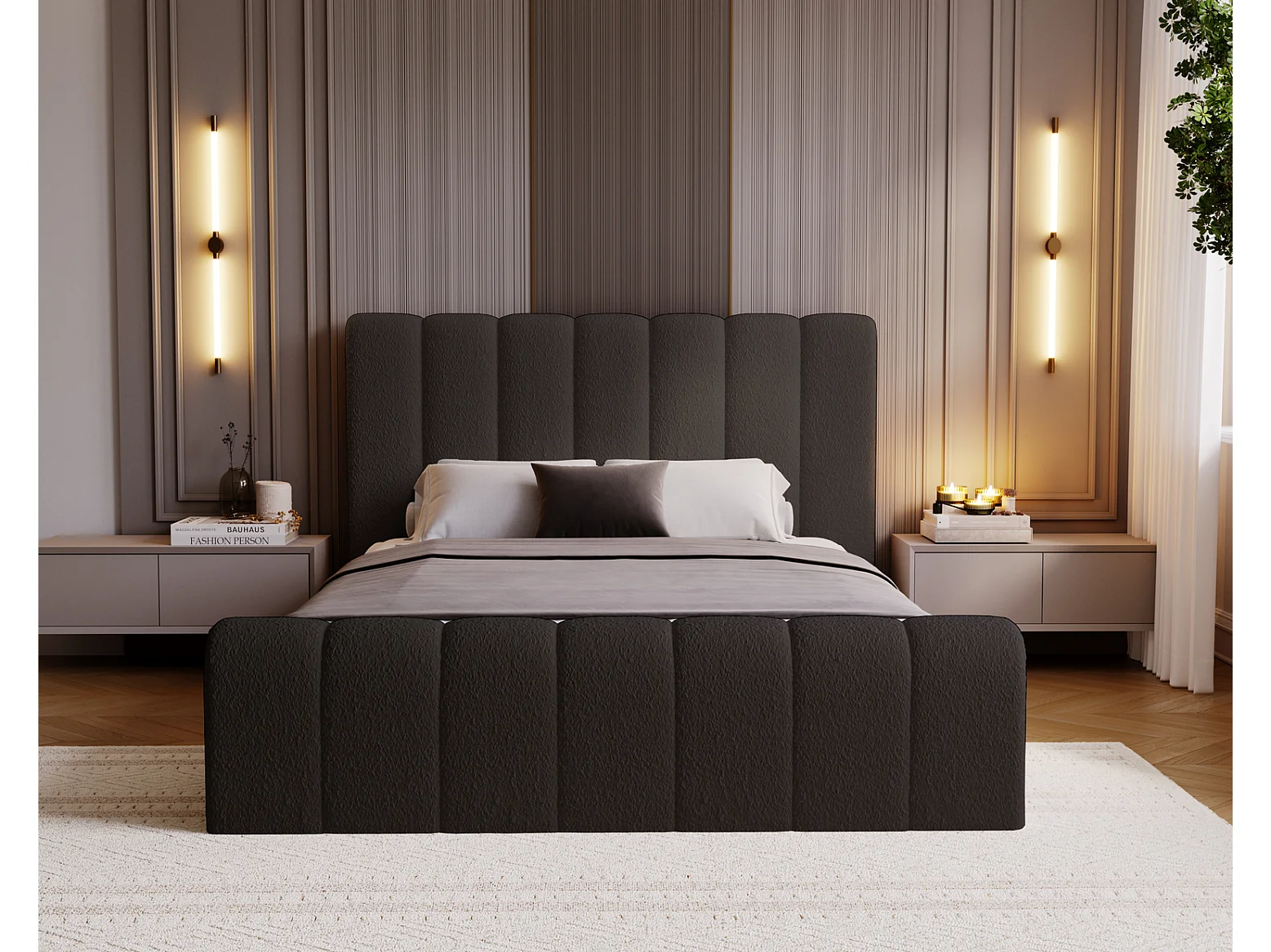 Emporius bed bouclé 200x200 Valetta - Gestoffeerd bed met opbergruimte, luxe bed met lattenbodem en bedlade - tweepersoonsbed 200x200 - Zwart (Anthology 19)