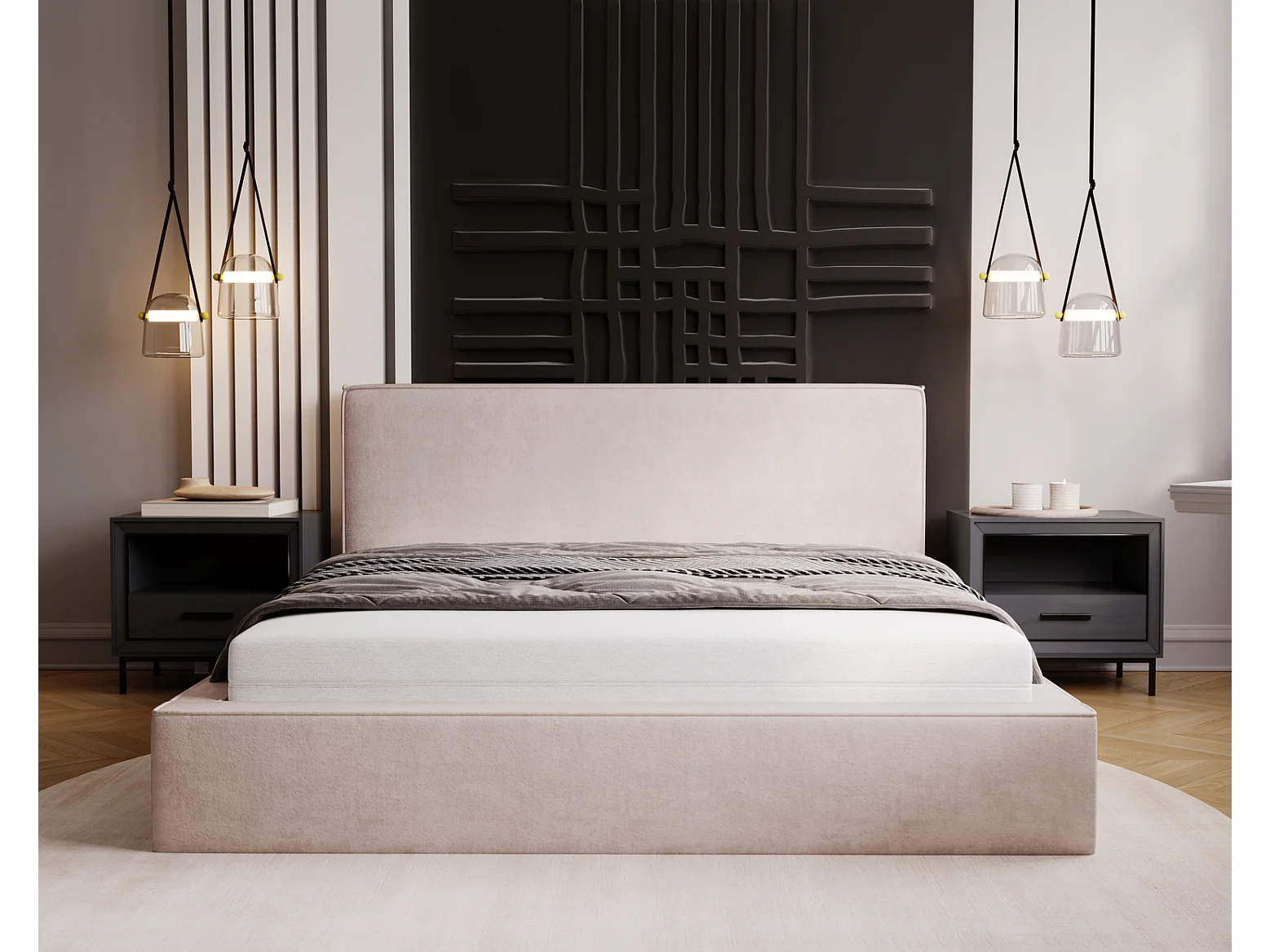 Emporius Gestoffeerd bed 200x200 Amare - tweepersoonsbed met opbergruimte - fluwelen Beige (Komodo 11)