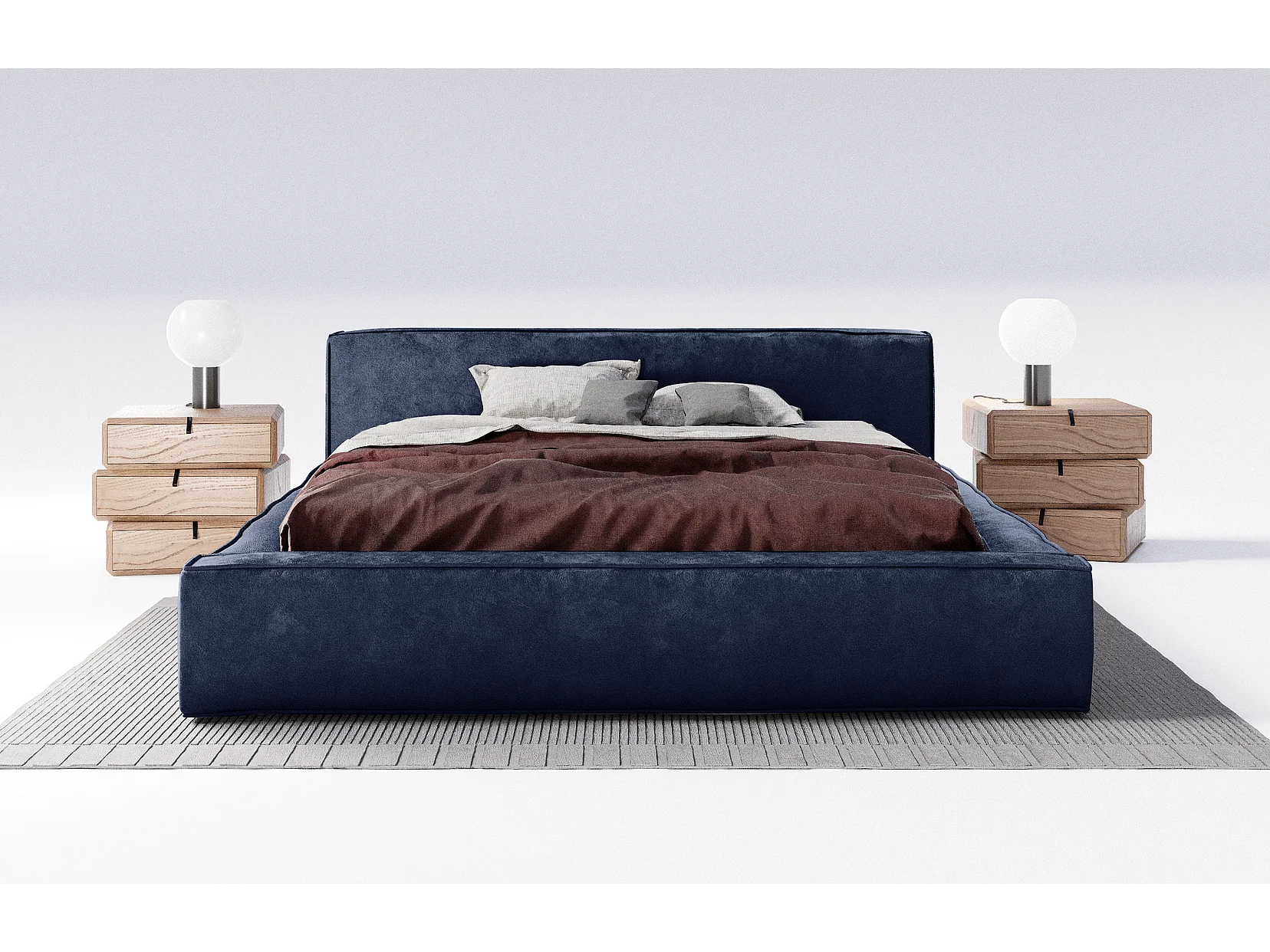 Emporius gestoffeerd bed tweepersoonsbed 140x200 Bueno - lattenbodem, opbergruimte - fluweel - Blauw (Infinity 11)