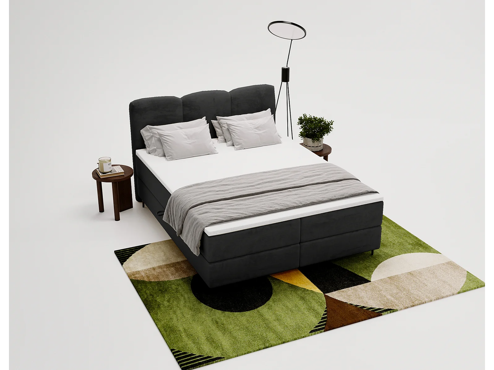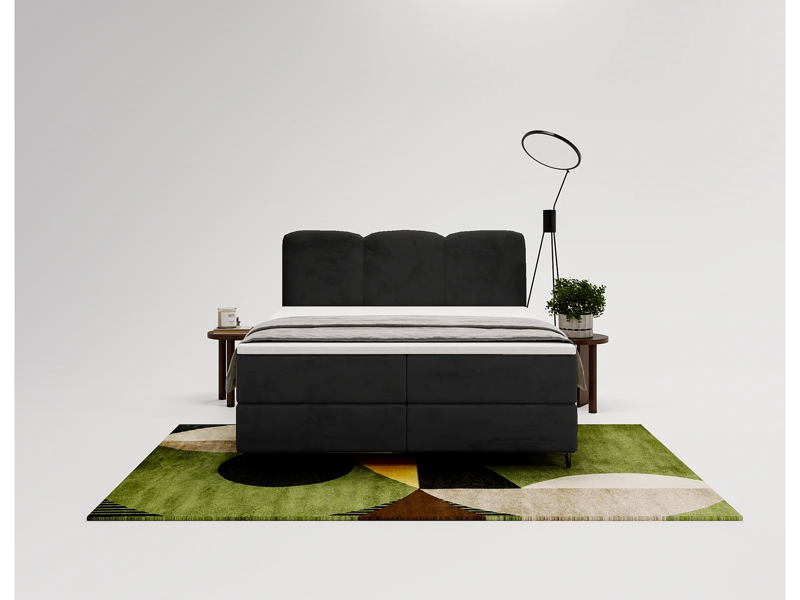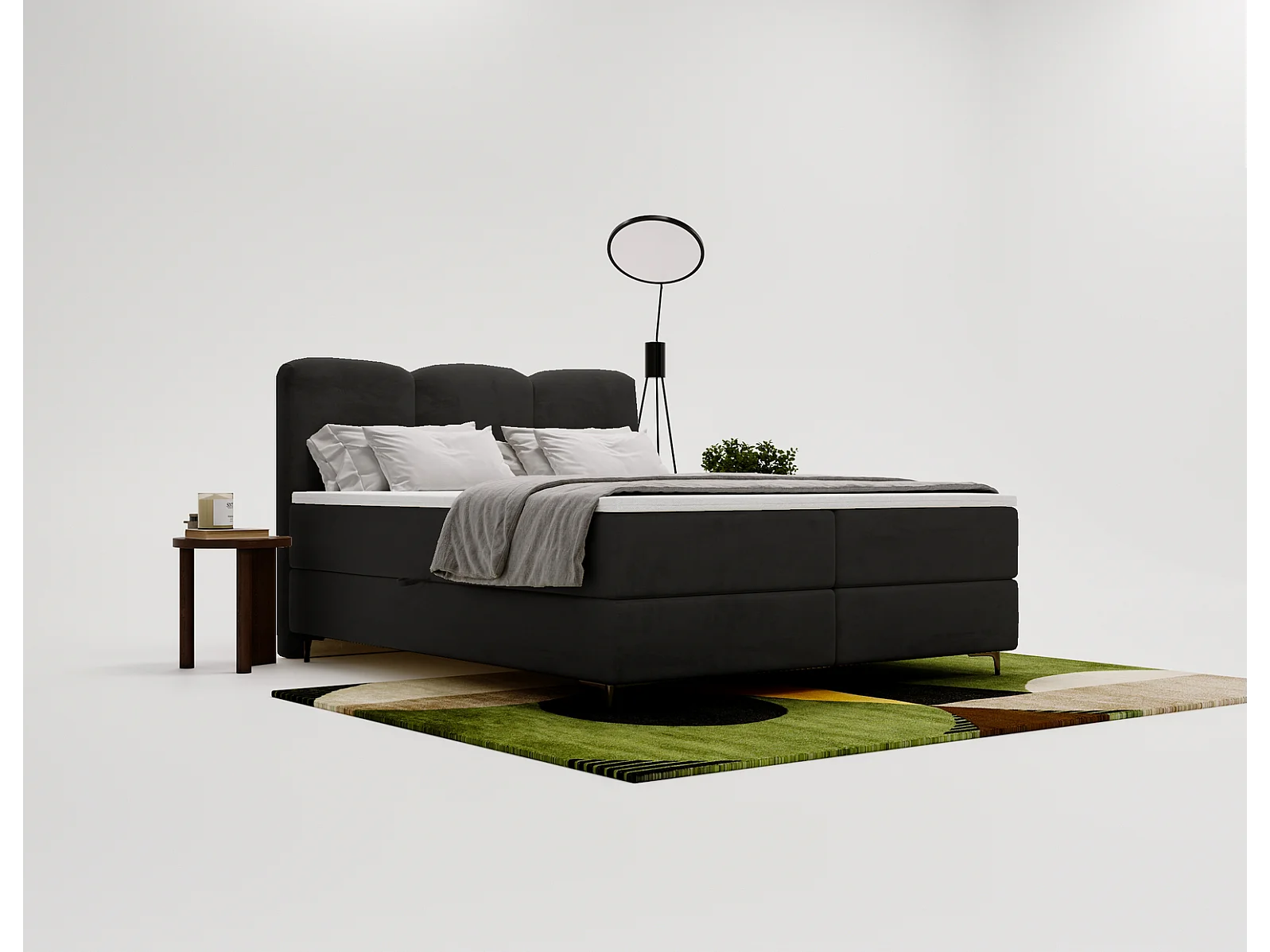 Emporius Malaga Box gestoffeerd bed 140x200 met matras H3 - boxspringbed, bed met opbergruimte en topper - fluweel zwart (Magic Velvet 2219)