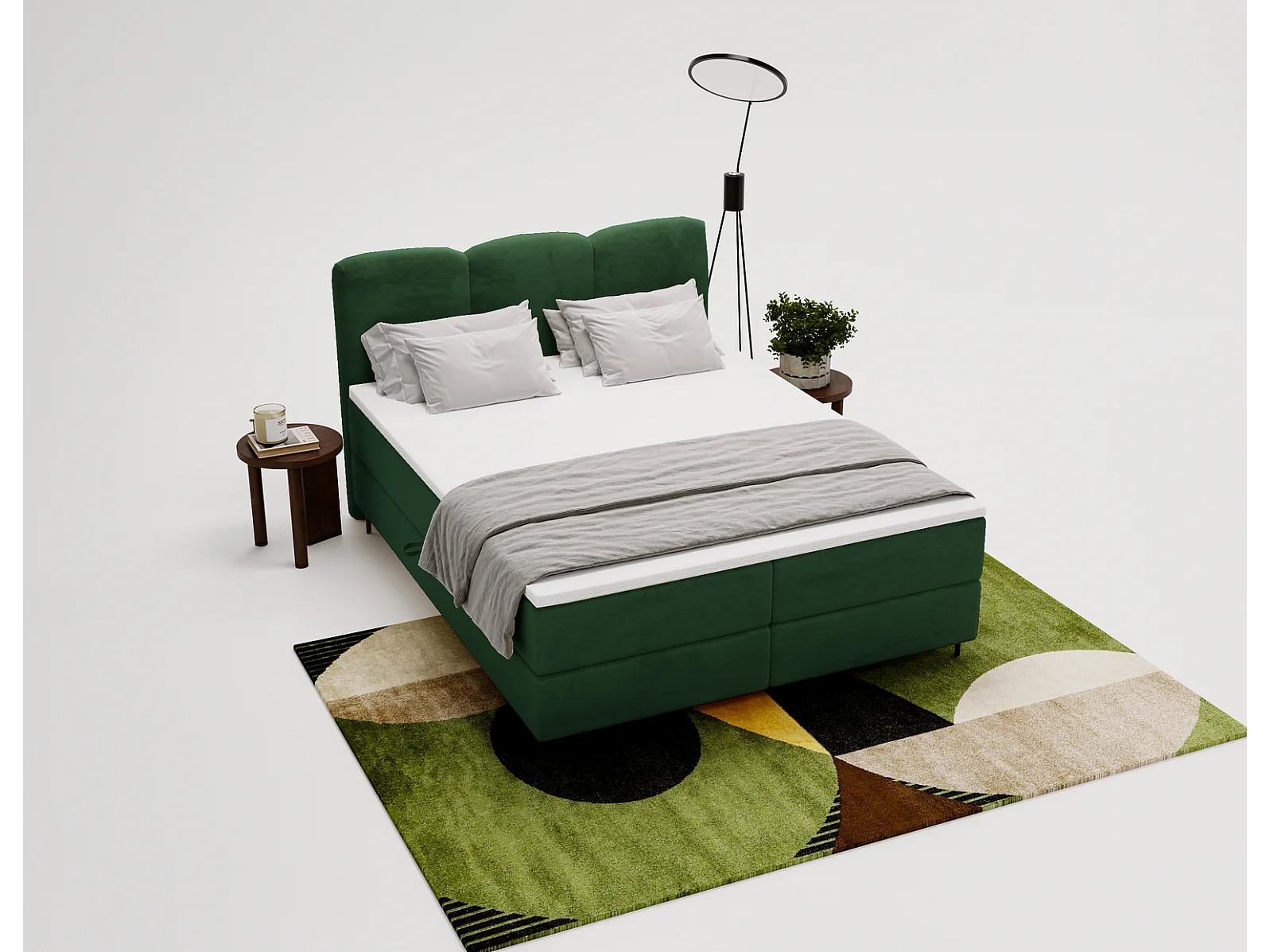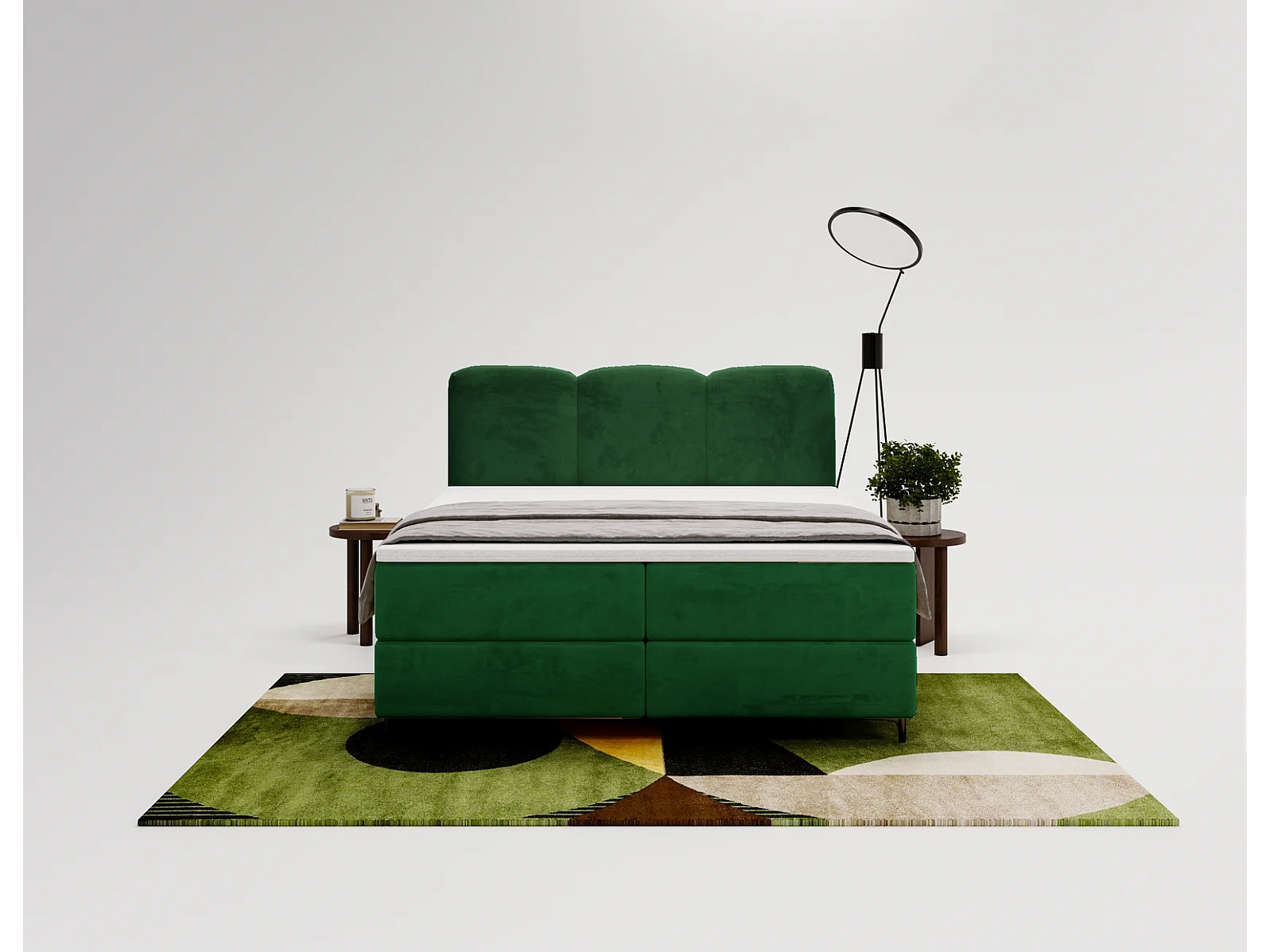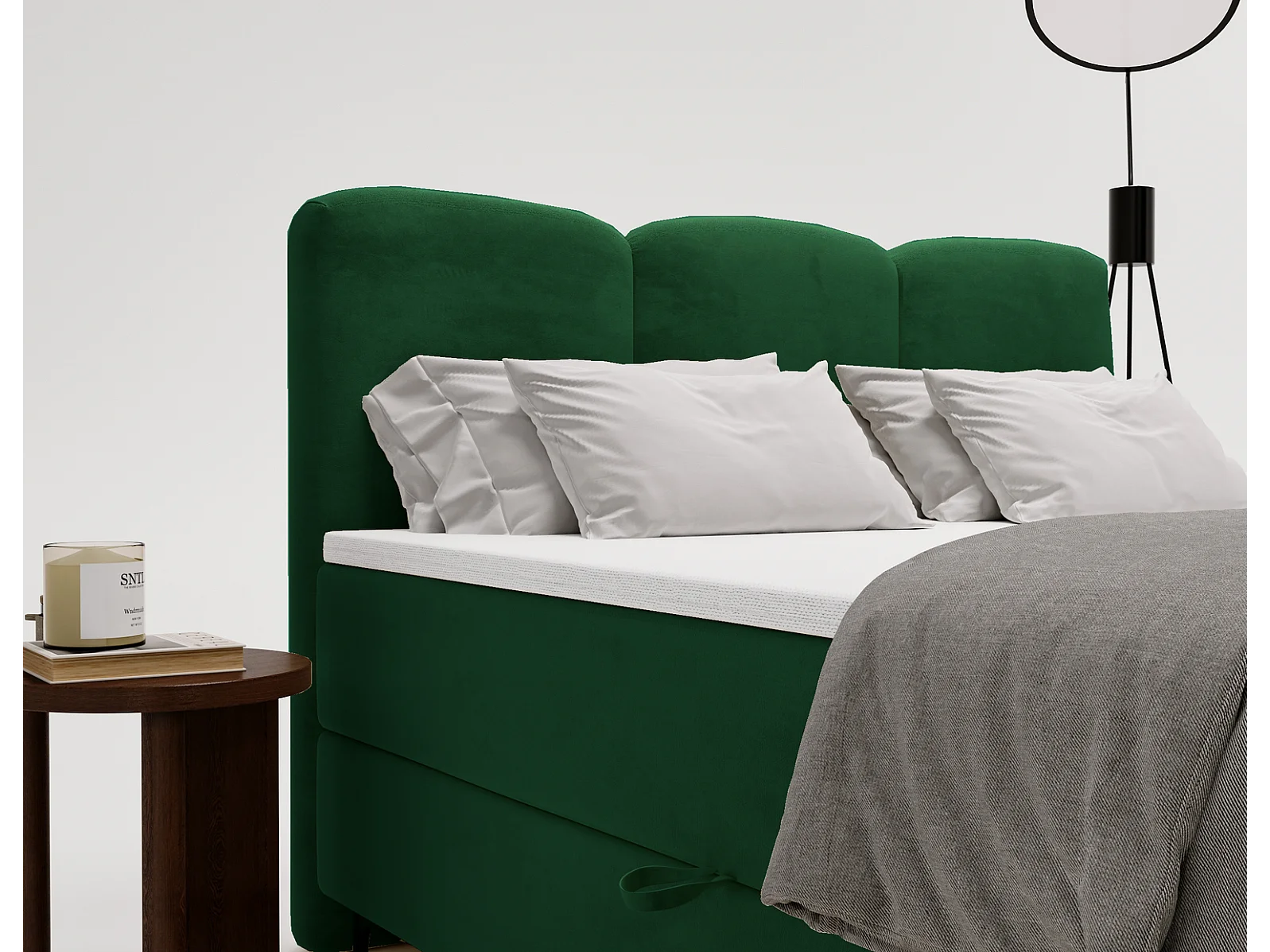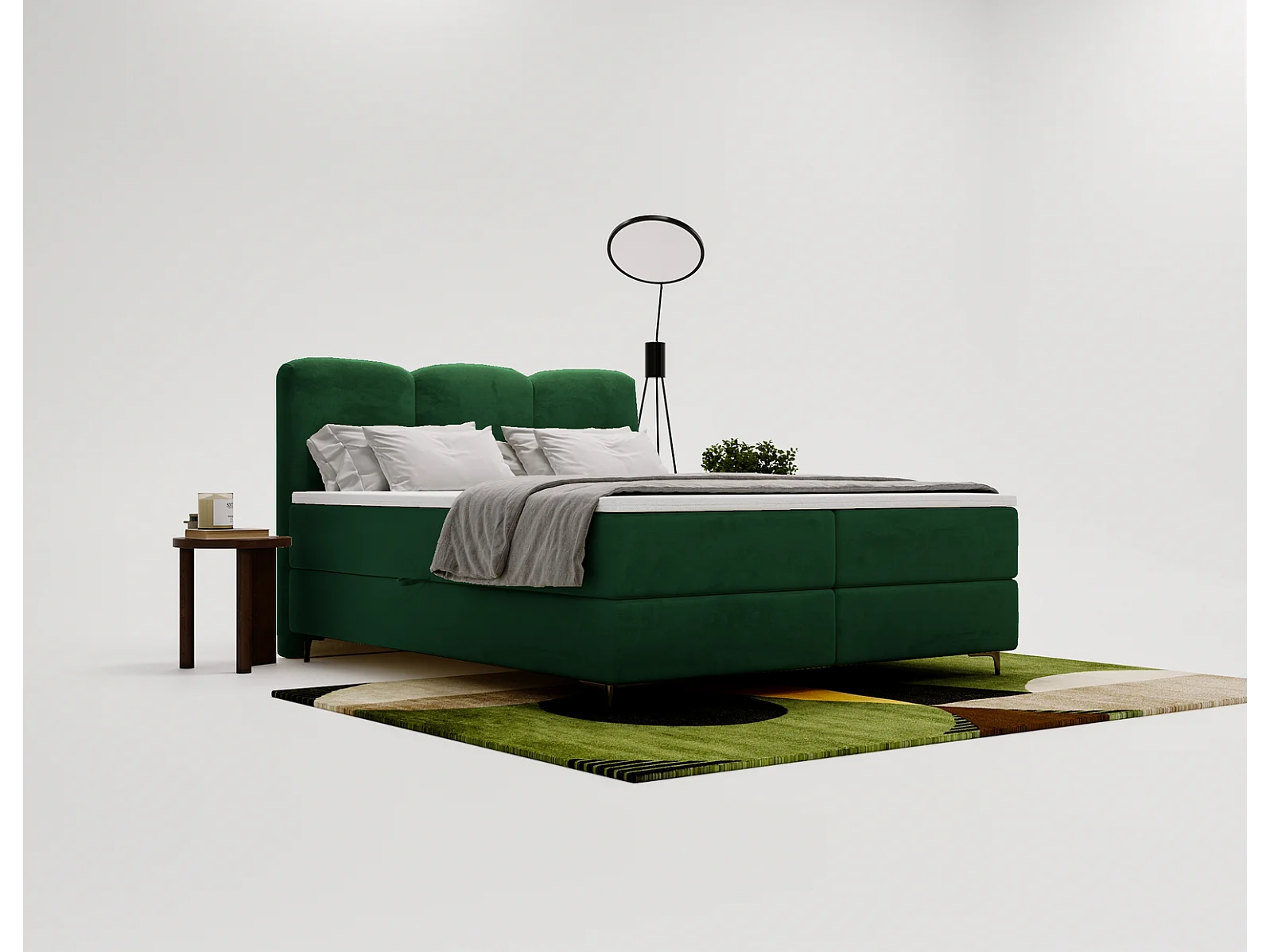 Emporius Malaga Box gestoffeerd bed 160x200 met matras H3 - boxspringbed, bed met opbergruimte en topper - fluweel groen (Magic Velvet 2225)