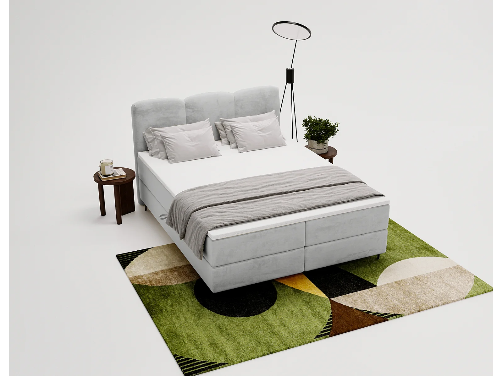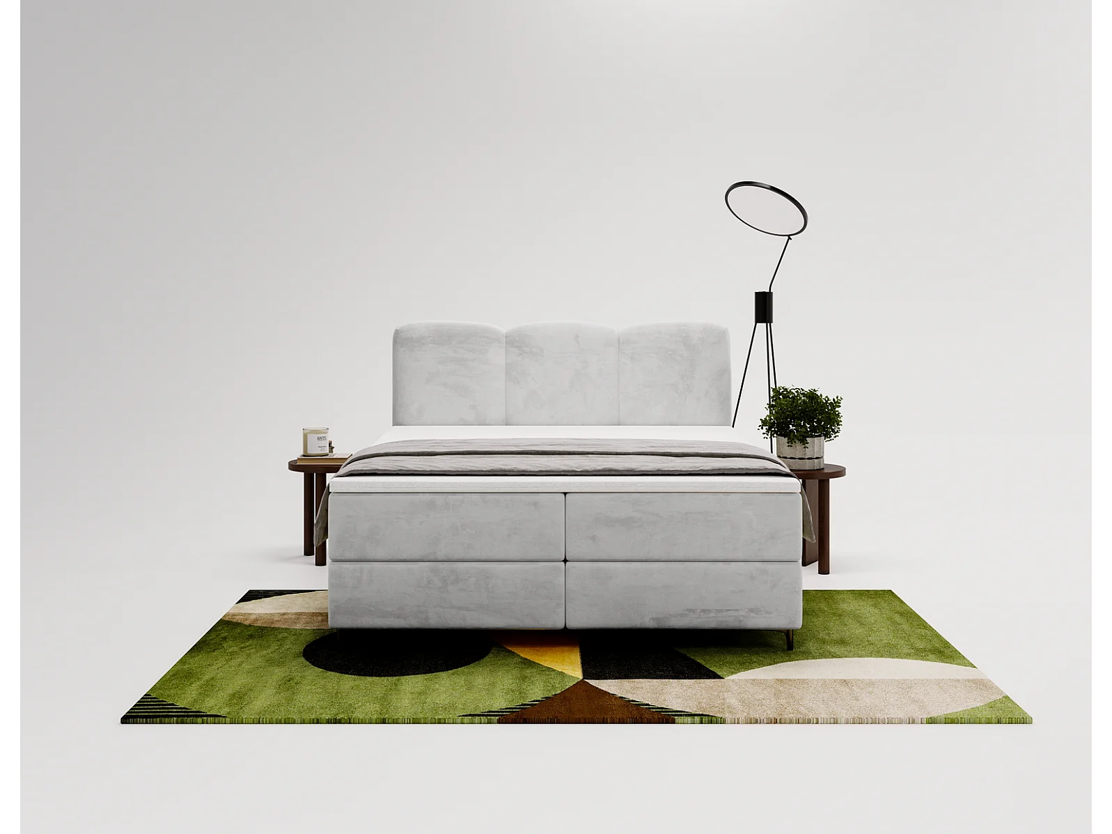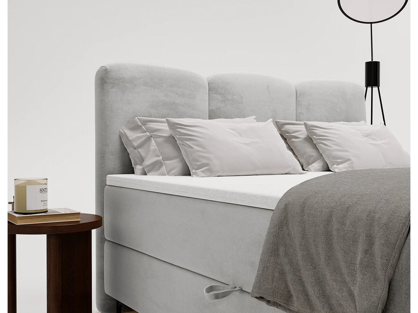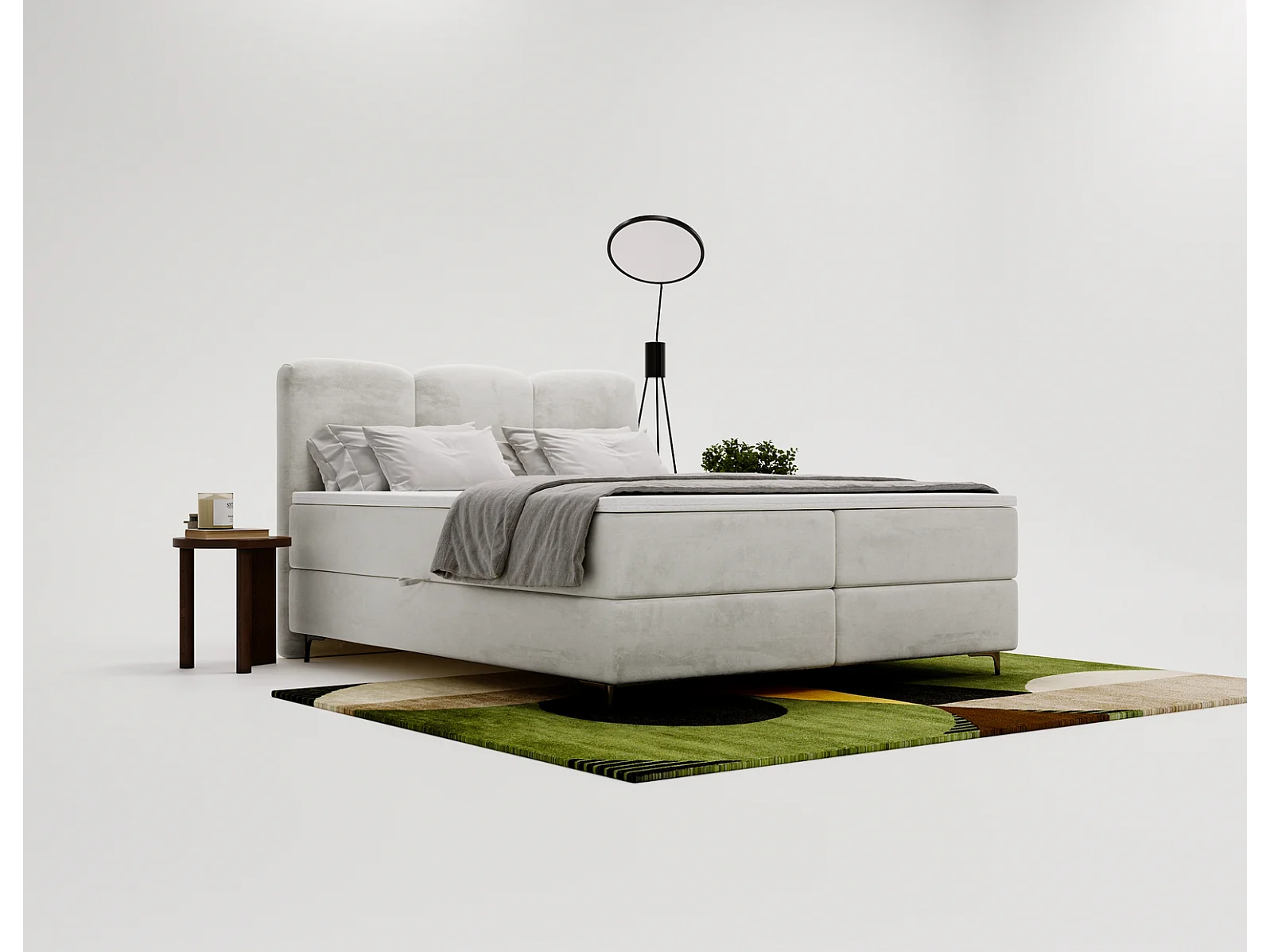 Emporius Malaga Box gestoffeerd bed 180x200 met matras H3 - boxspringbed, bed met opbergruimte en topper - fluweel lichtgrijs (Magic Velvet 2218)