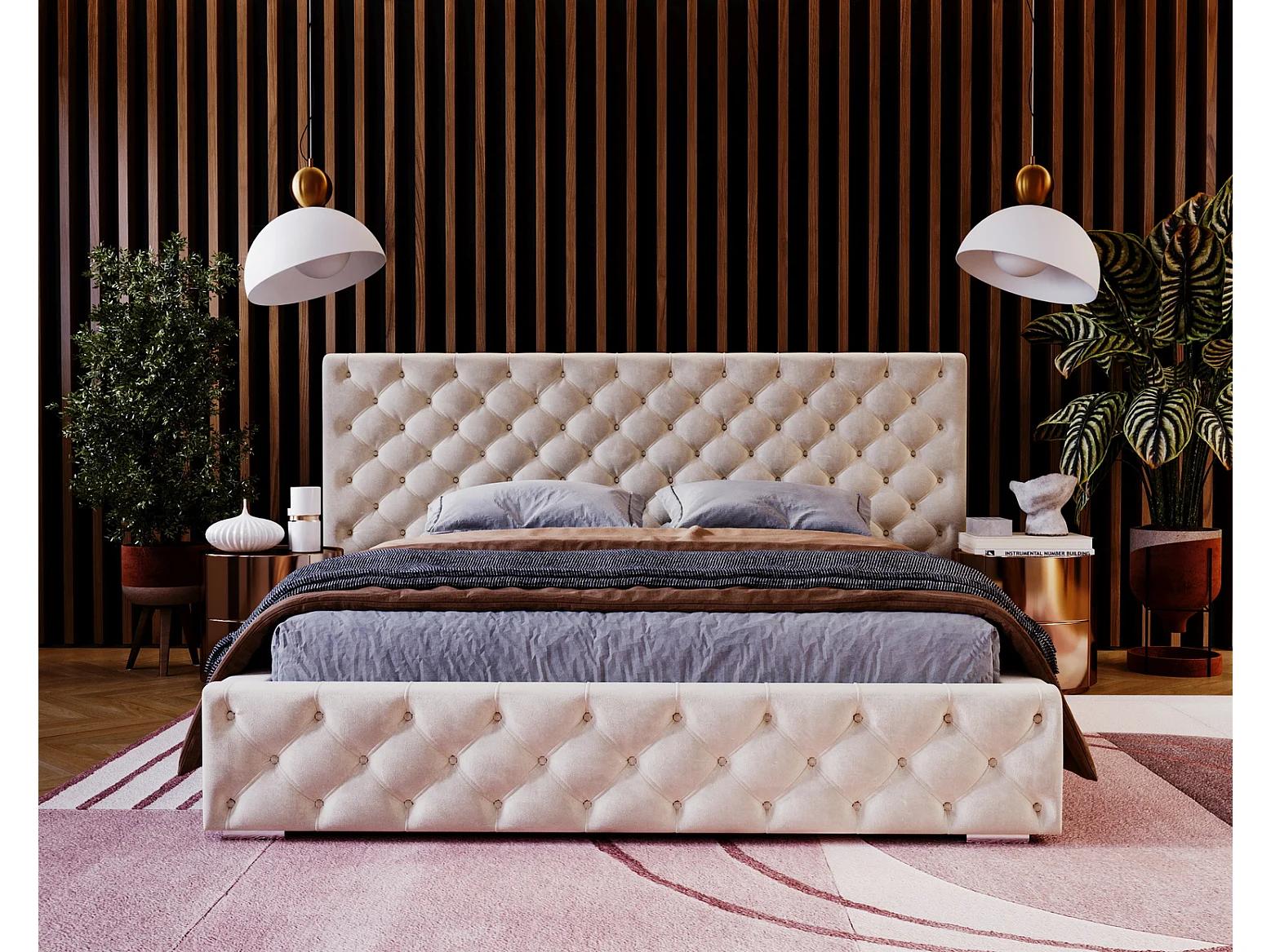 Emporius tweepersoonsbed 140x200 Bella, glamourstijl - gestoffeerd bed, chesterfield, opbergruimte - fluweel Beige (Magic Velvet 2201)