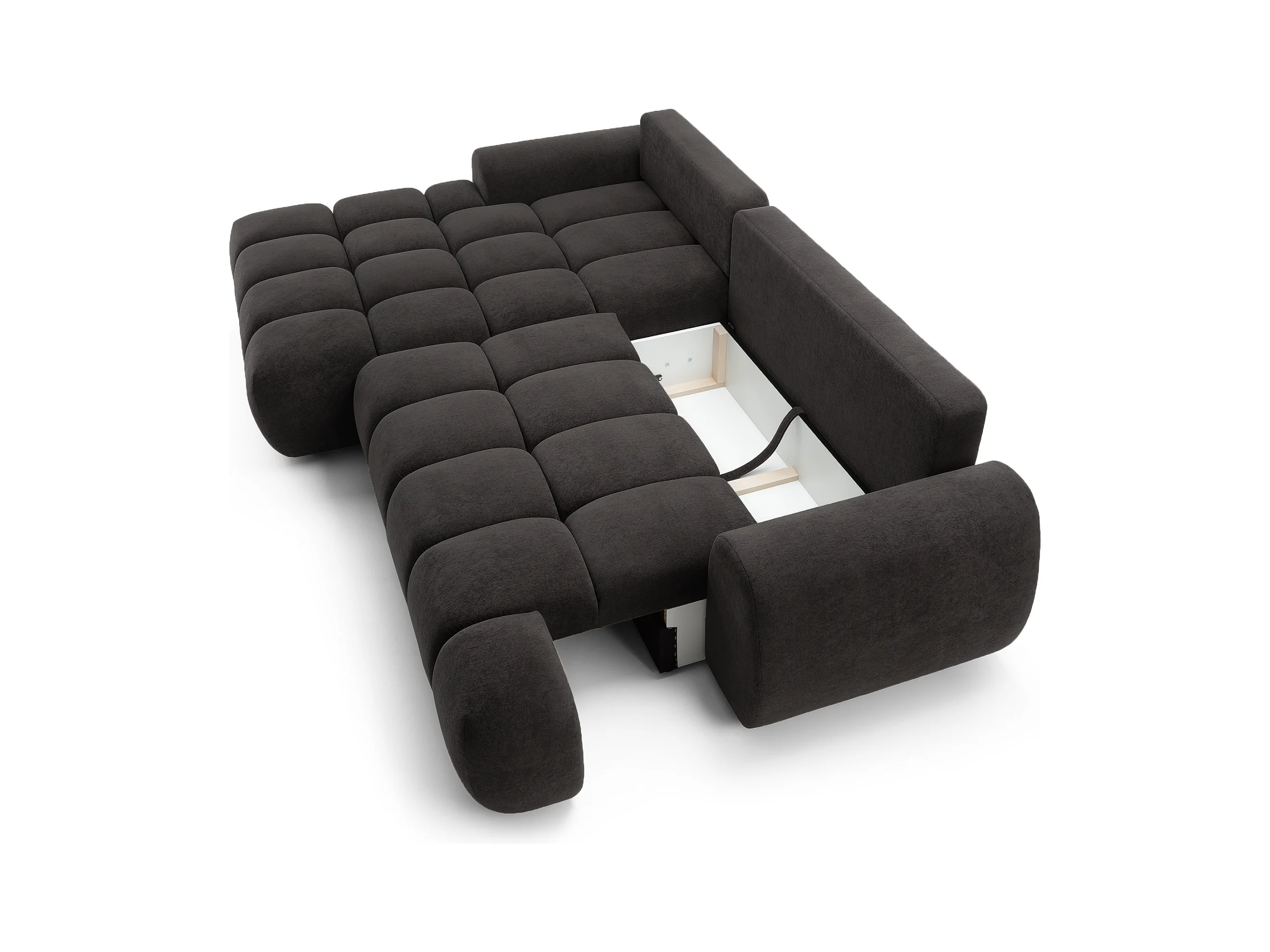 Emporius Valerio Hoekbank 280 cm - Slaapbank met bedlade, links - fluweel zwart (Gobi 18)