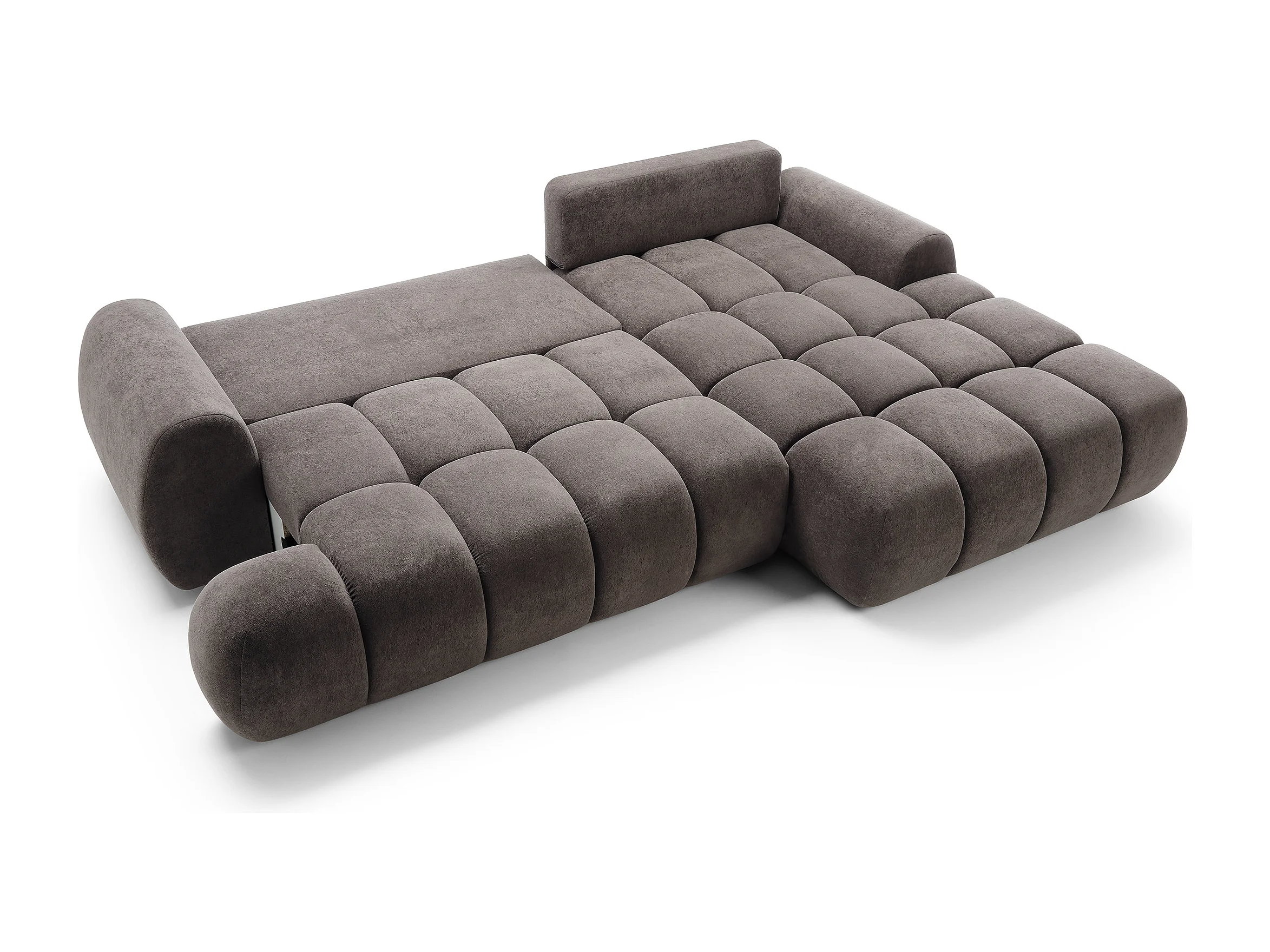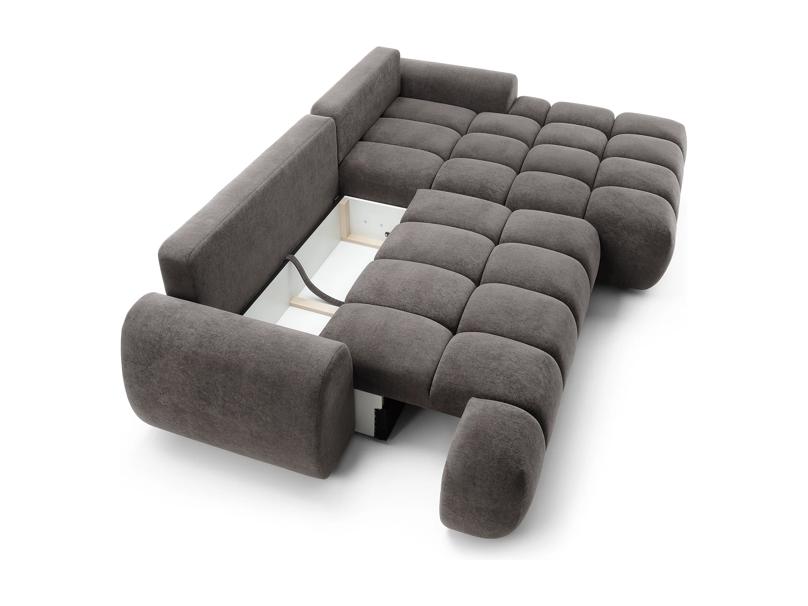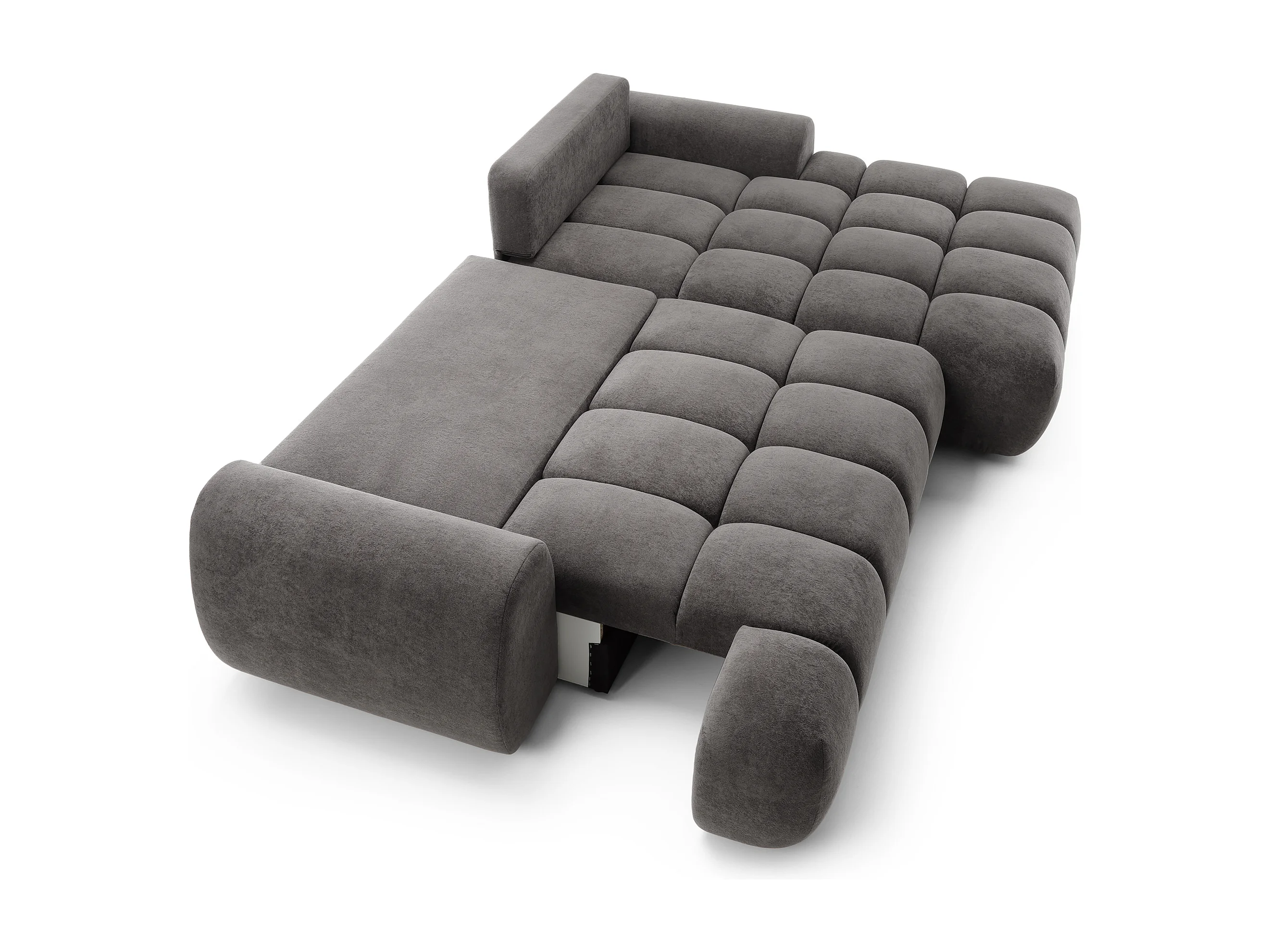 Emporius Valerio Hoekbank 280 cm - Slaapbank met bedlade, rechts - fluweel donkergrijs (Gobi 17)