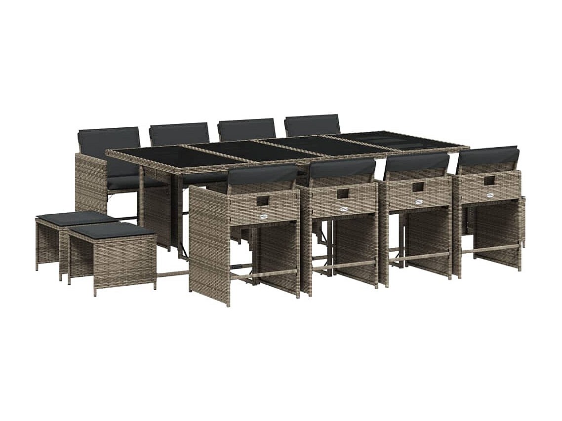 Xeli 13-delige Tuinset met kussens poly rattan grijs