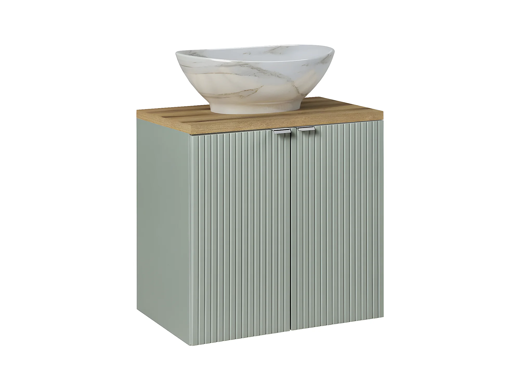 Enkel wastafelmeubel 60cm 2 deuren en sokkel Jade Groen en Hout