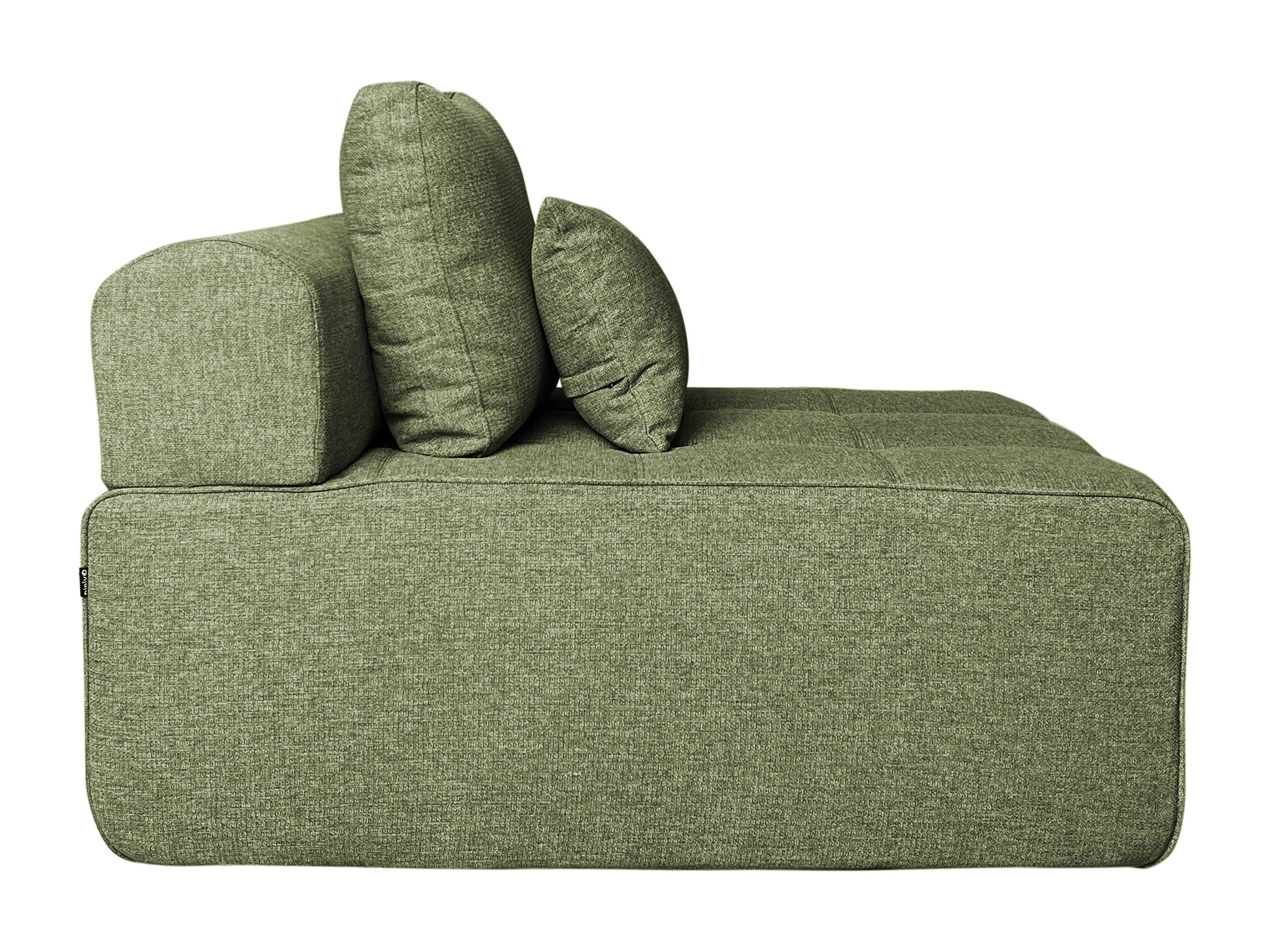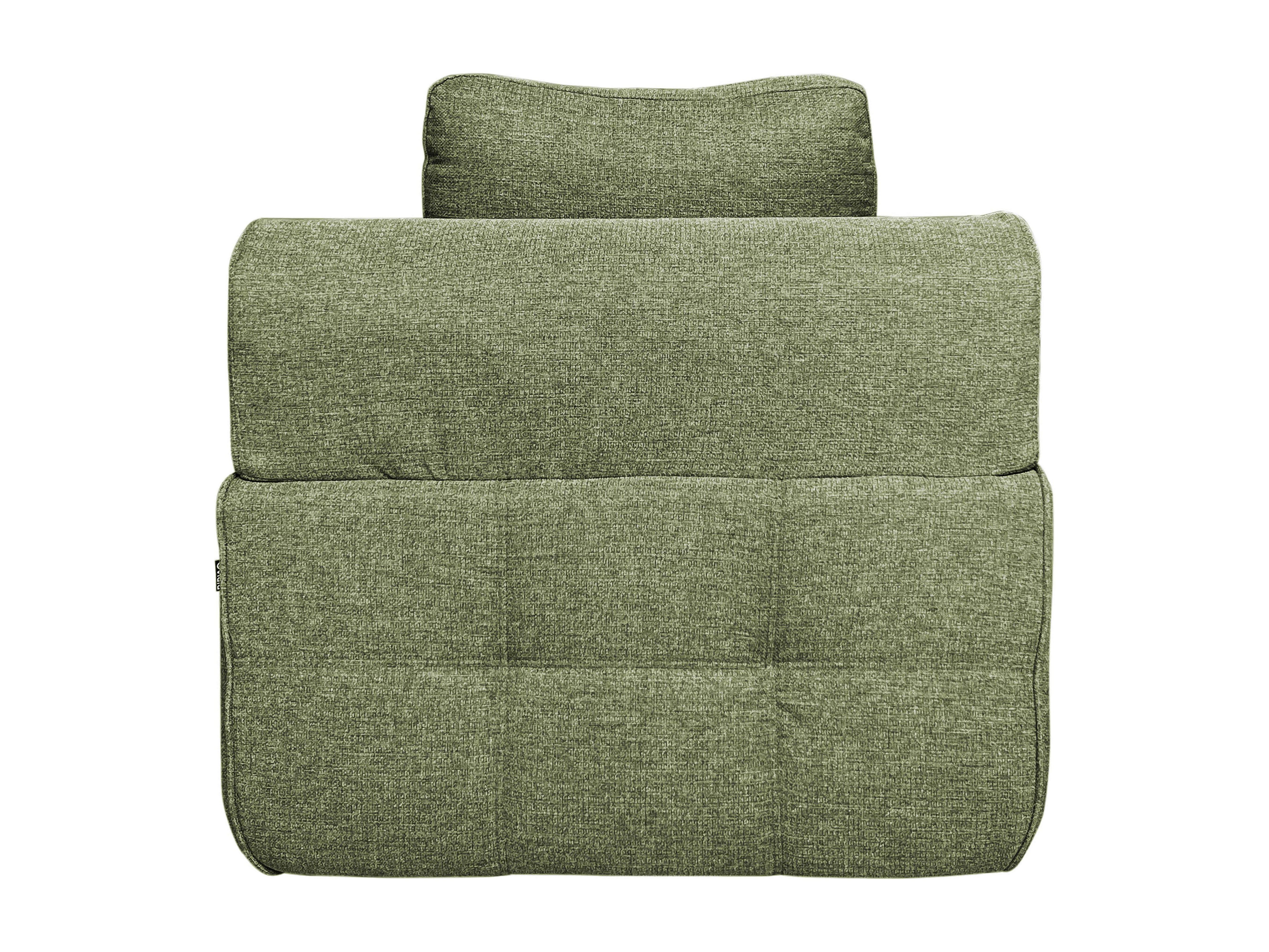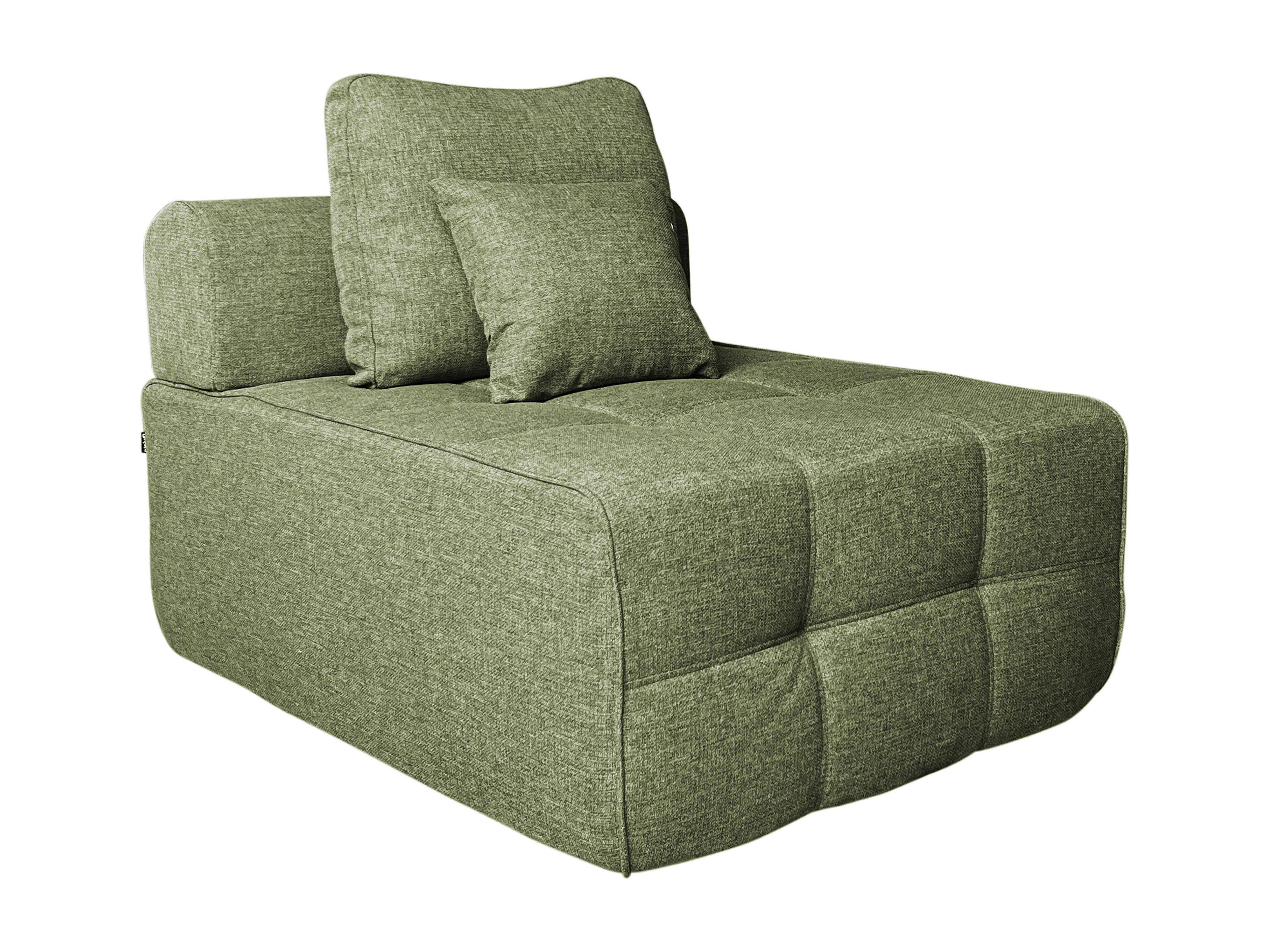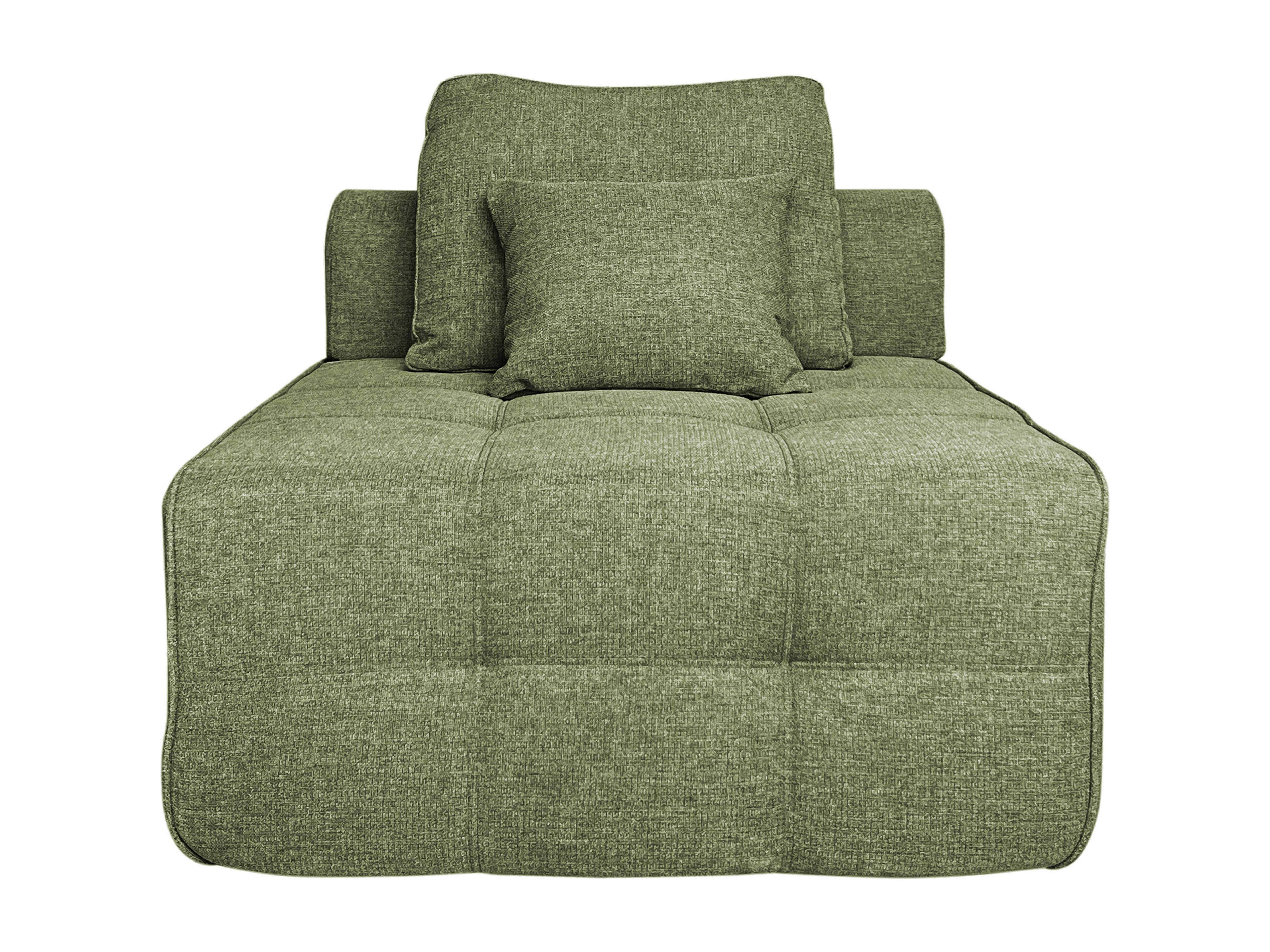 Enkele stoffen relaxfauteuil met groene kussens