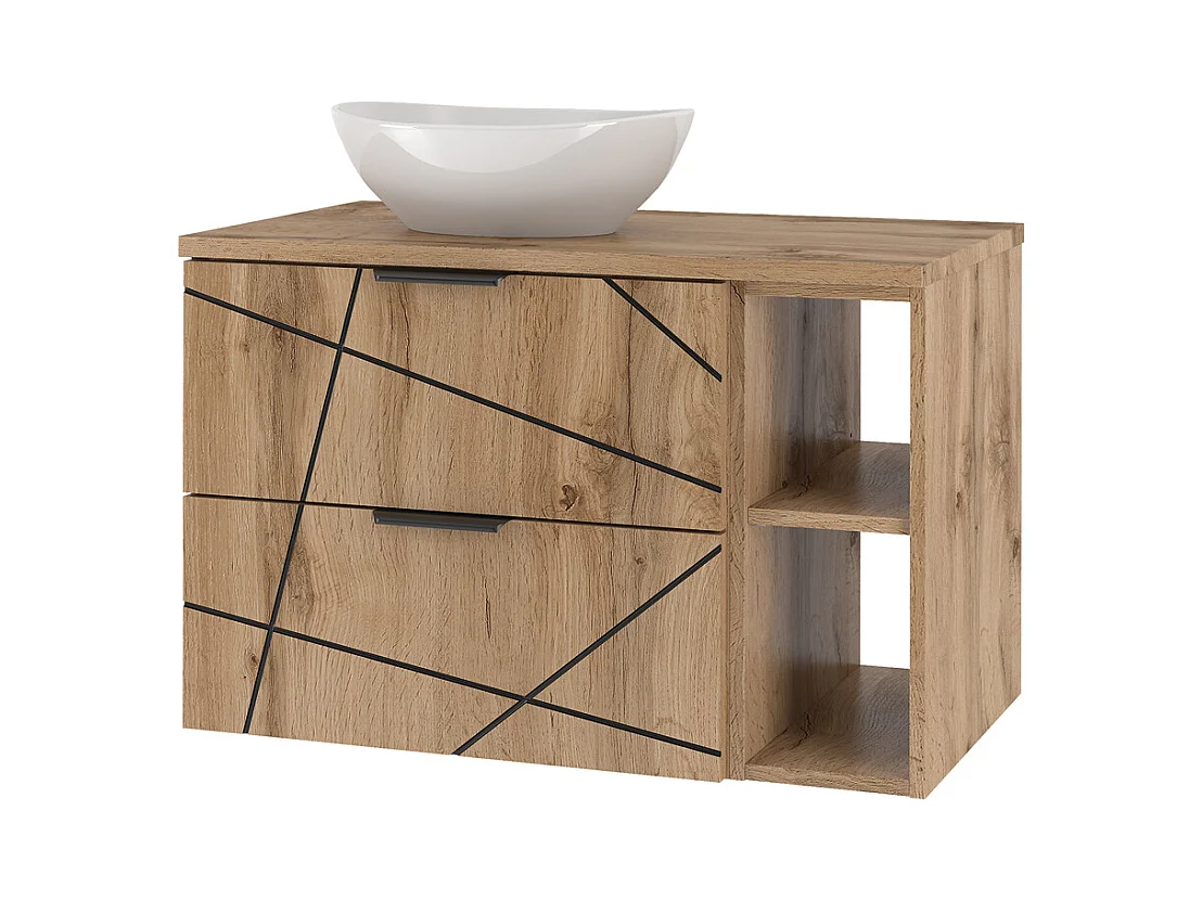 Enkele wastafel 80cm 2 nissen Teren Wood