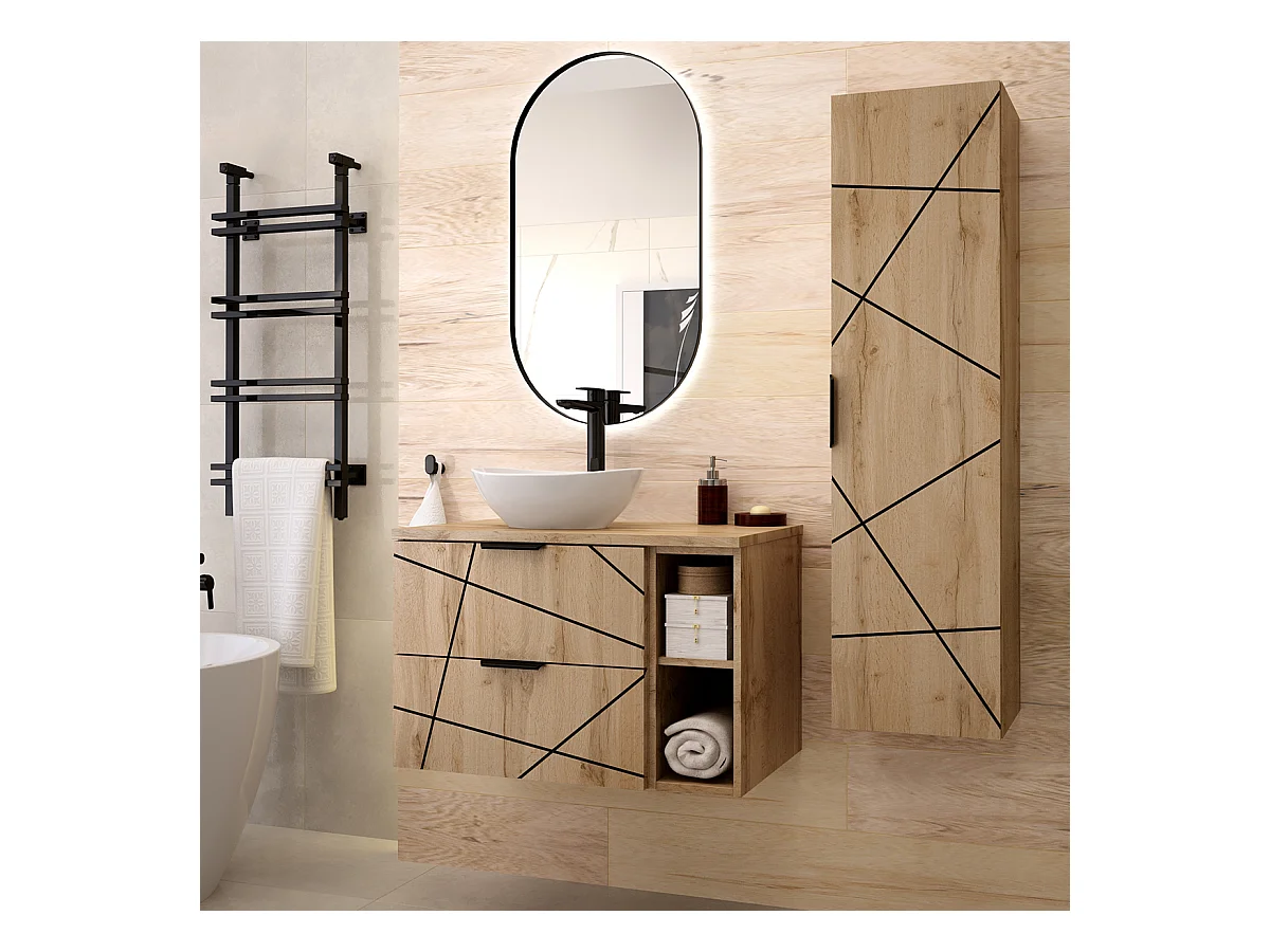 Hangende badkamermeubel met houtlook opbergvak - L30 x D30 x H133 cm - MIELA II