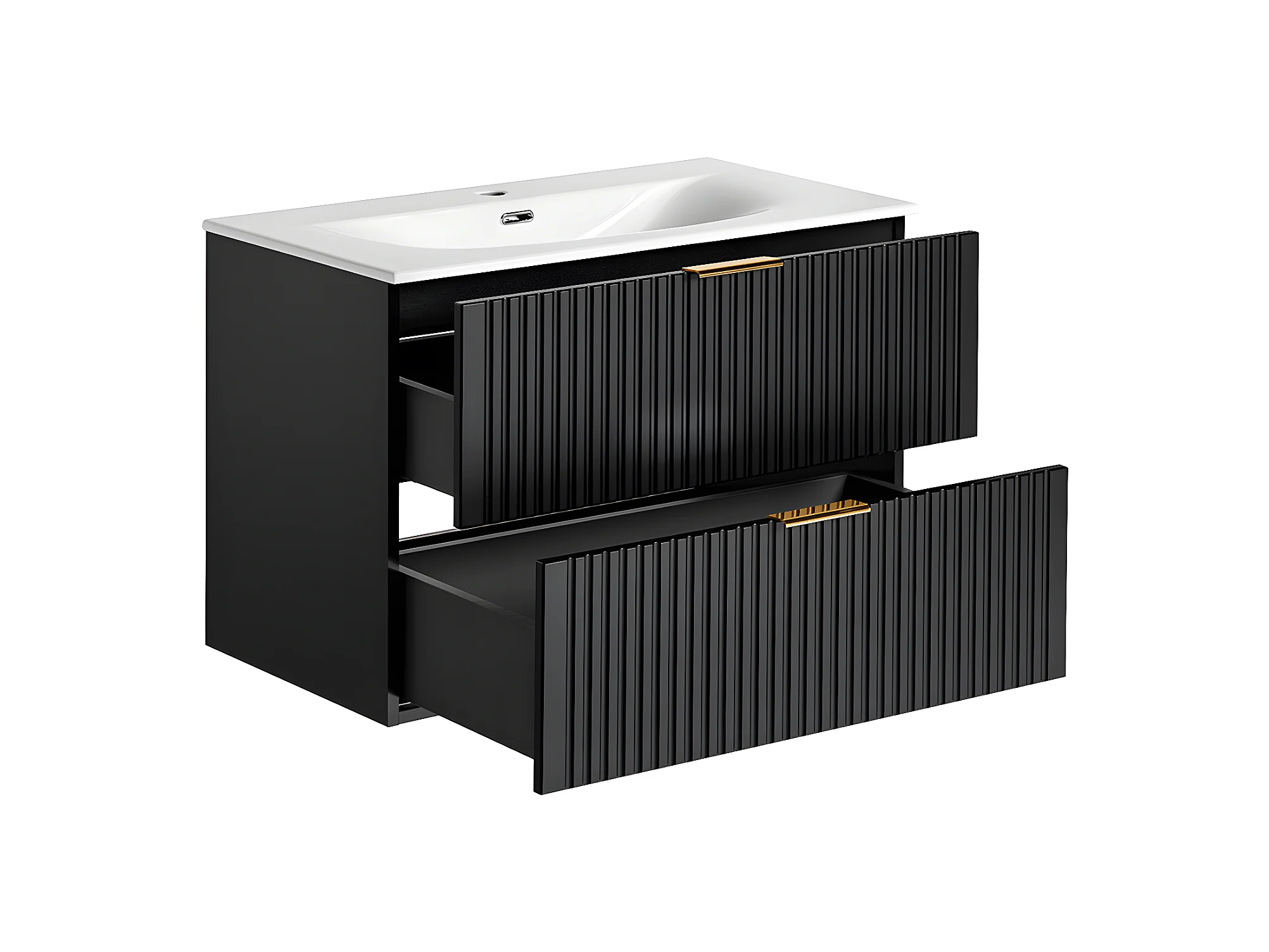 Enkele wastafel 80cm Gaia Wood en Zwart - Zwarte wastafel