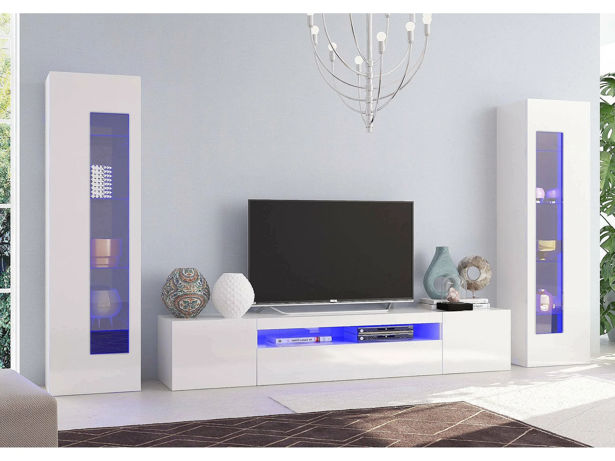 Dmora Wandmeubel Enzo 40x290x162h cm Hoogglans Wit 10 Verstelbare Planken, 5 Deuren Made in Italy