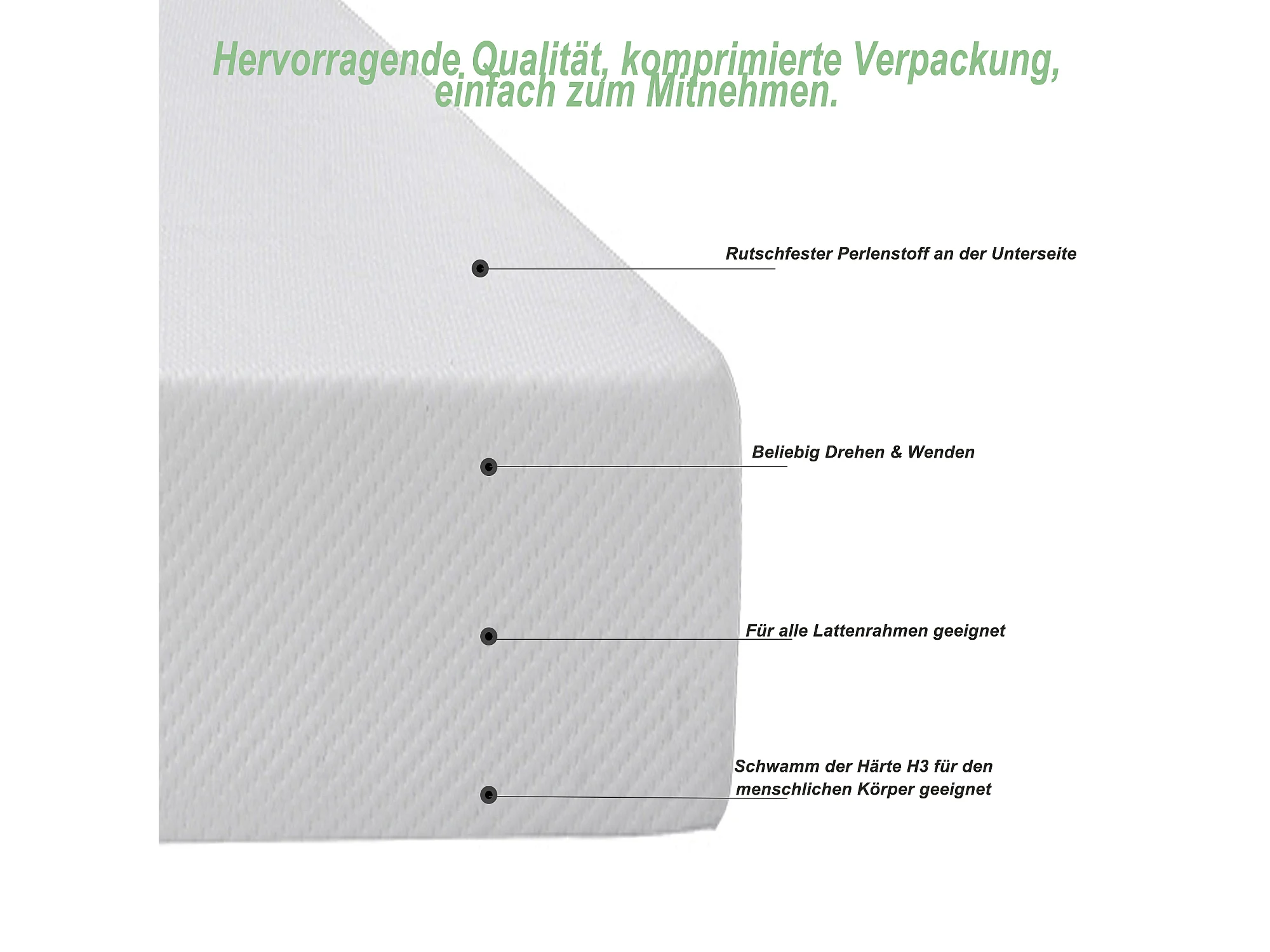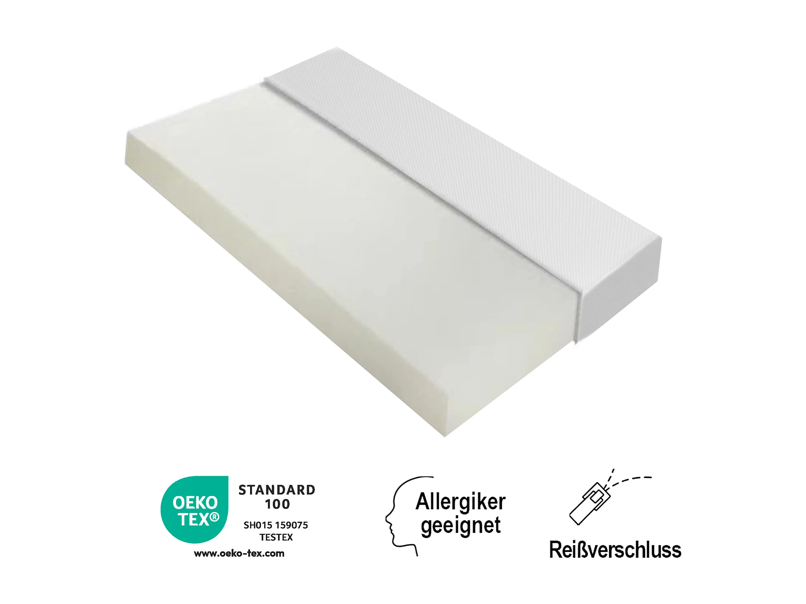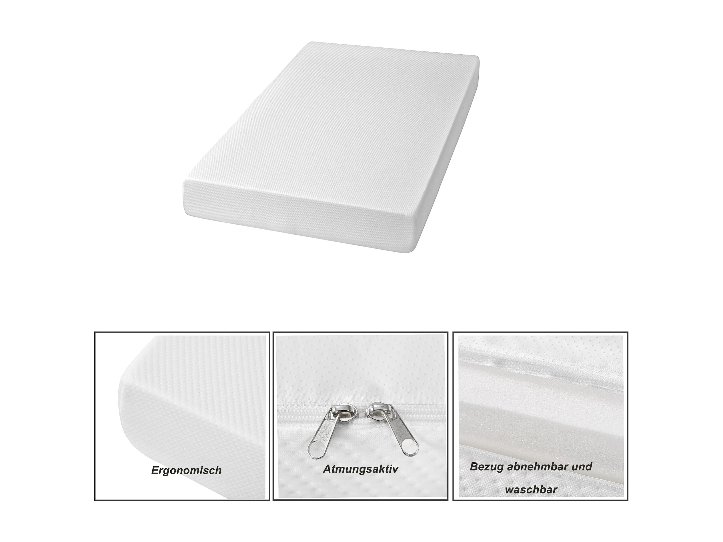 Ergonomisch matras met antislip hoes, Oeko-Tex gecertificeerd, schuim, wit (200x90x16 cm)