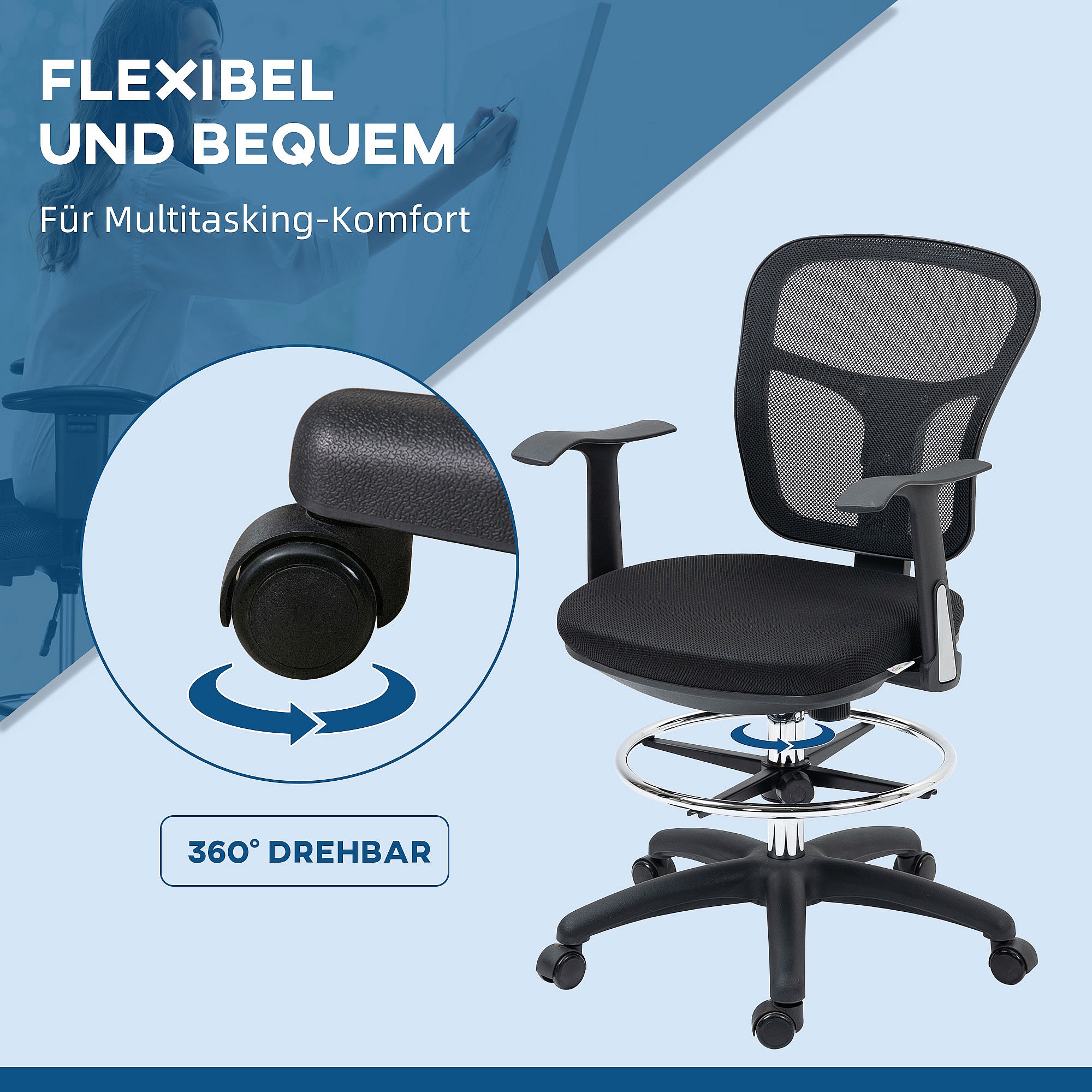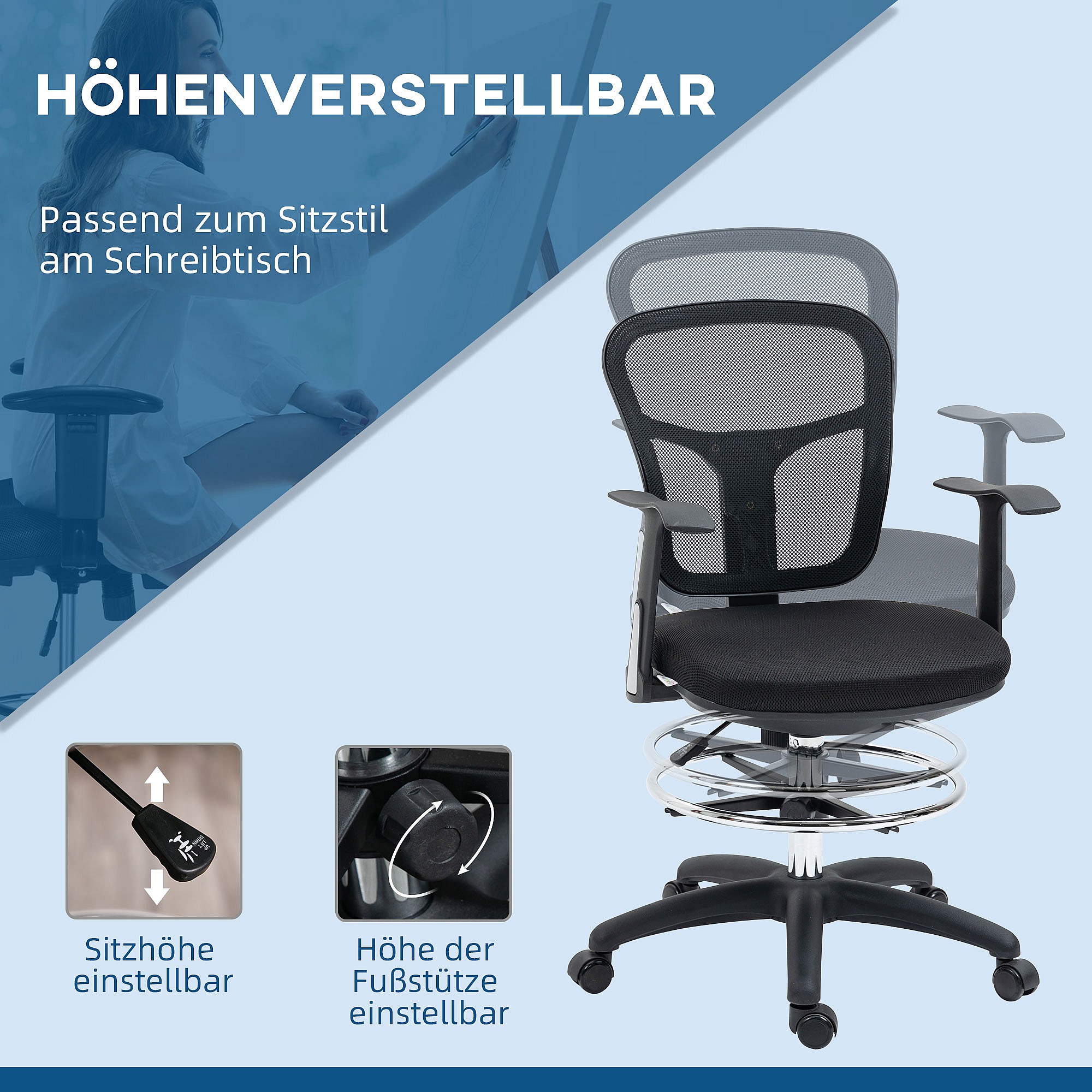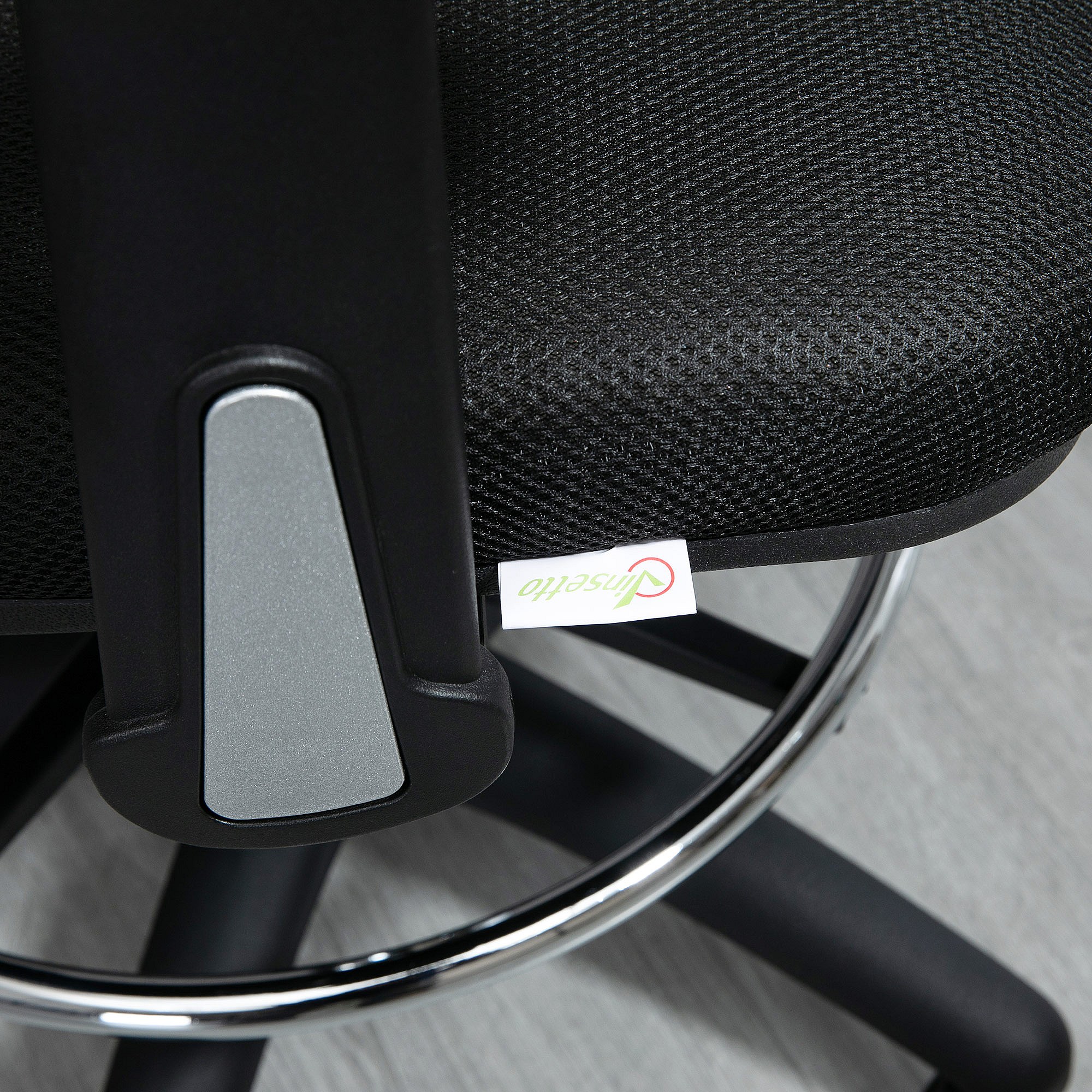 Ergonomische bureaustoel in computerstijl, verstelbaar, met armleuningen en voetensteun, zwarte netstof, voor kantoor of thuiskantoor