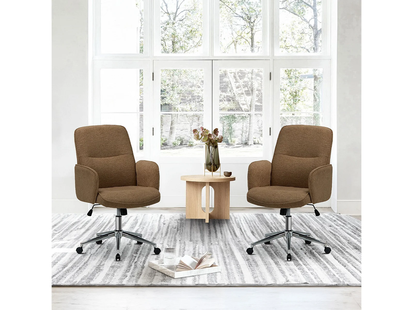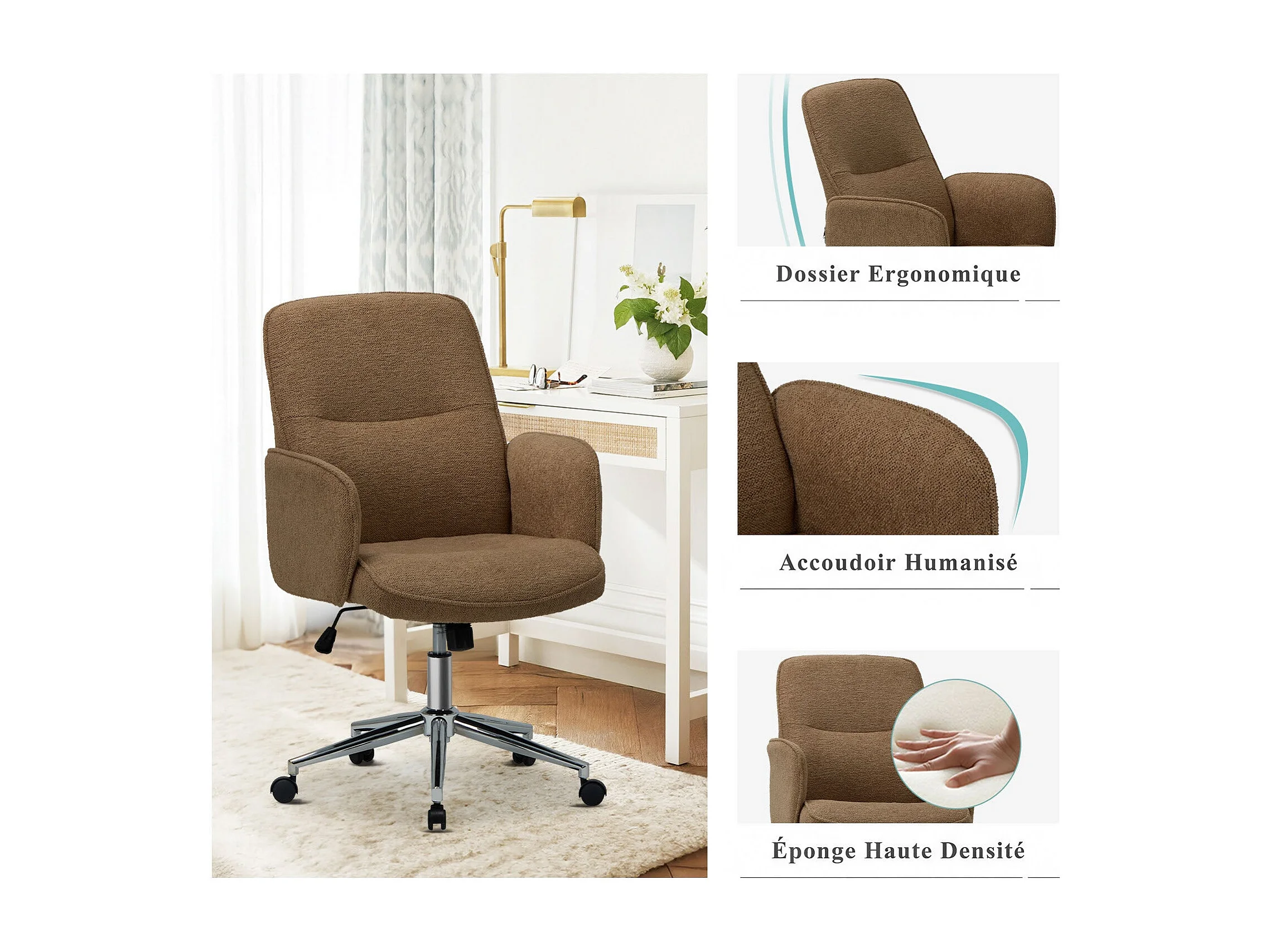 Ergonomische bureaustoel met hoog schelpvormig rugleuning, verstelbare hoogte - Bruin