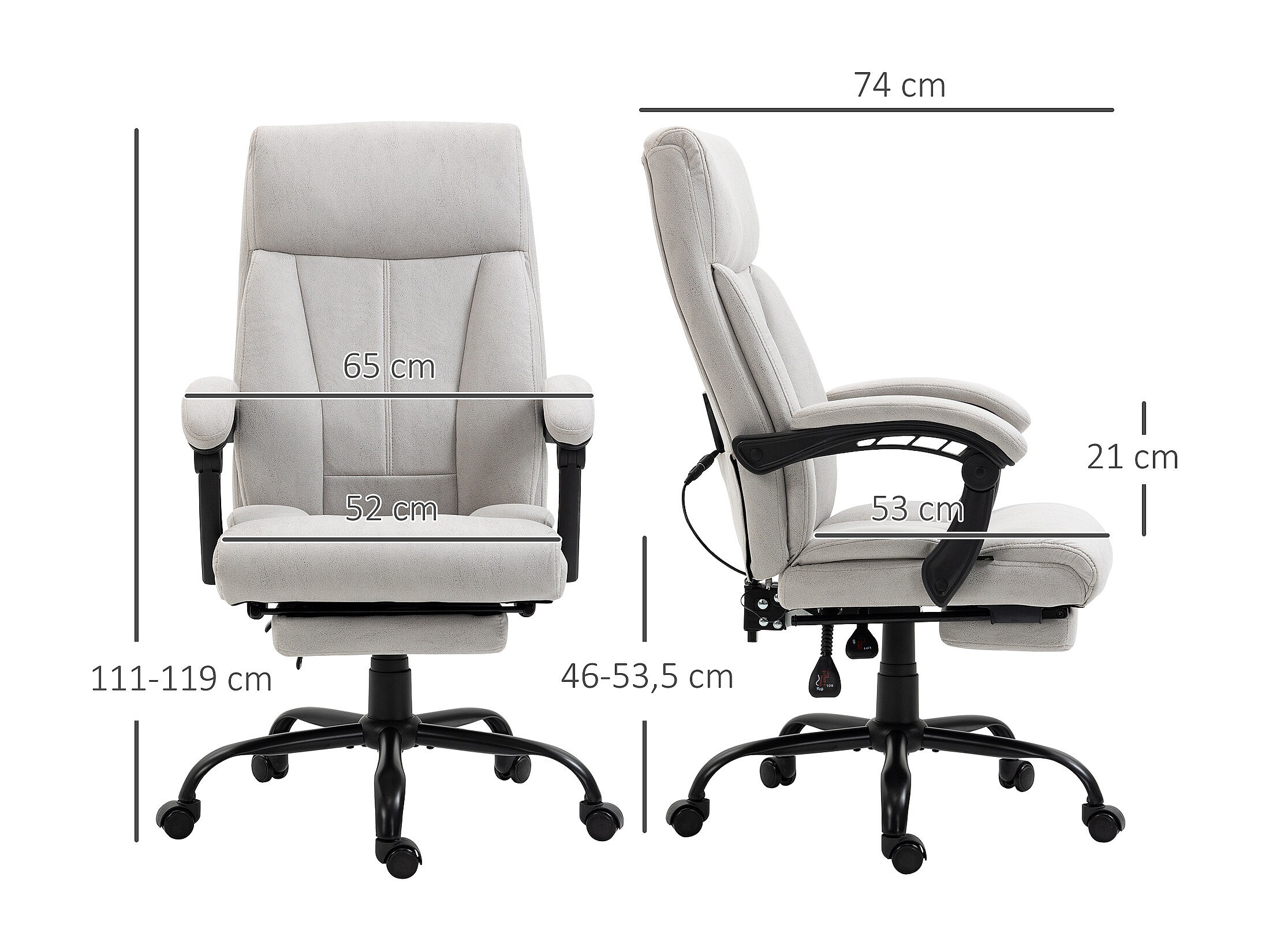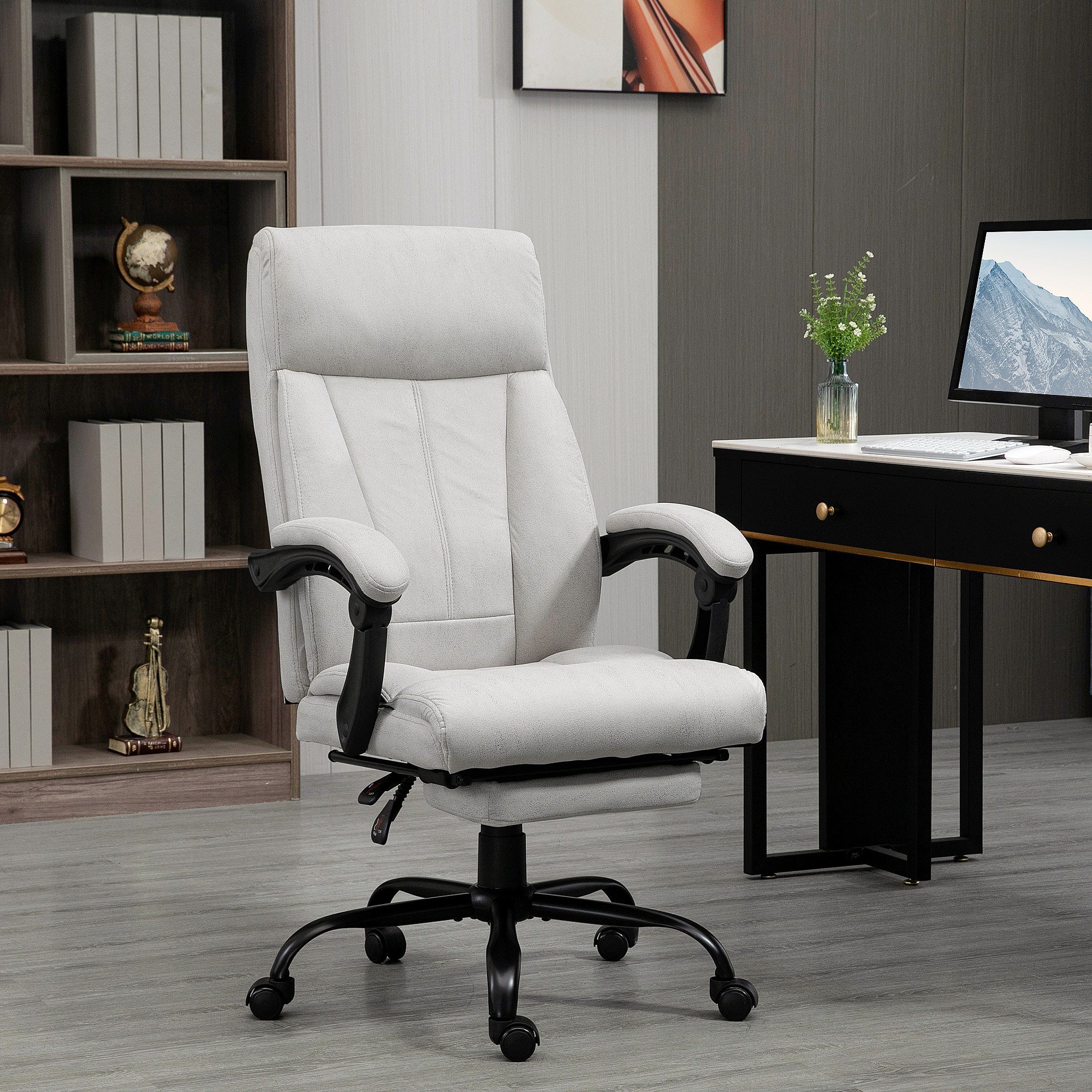 Ergonomische bureaustoel met massage en verstelbare voetensteun, comfortabel en grijs, perfect voor op kantoor of thuis