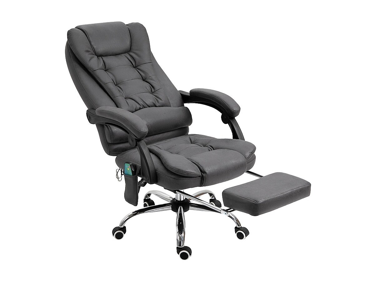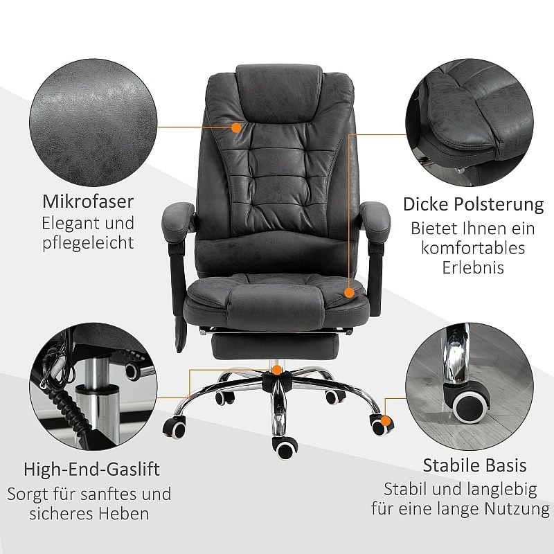 Ergonomische bureaustoel met massage en verwarming, 6 massagepunten, voetenbank, afstandsbediening, polyester hoes, grijze kleur, comfortabel