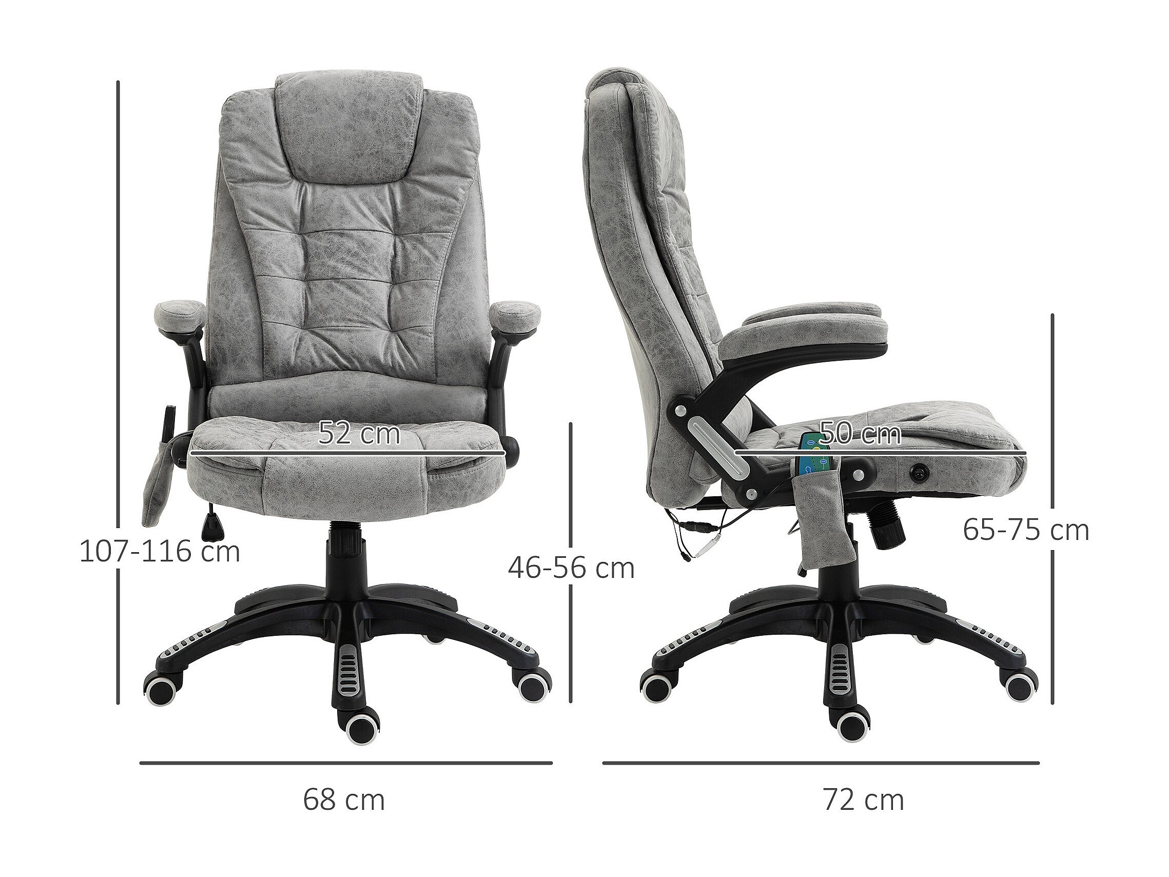 Ergonomische bureaustoel met massage en verwarming, in hoogte verstelbaar, 6 massagepunten, grijs, 68x72x110-120 cm