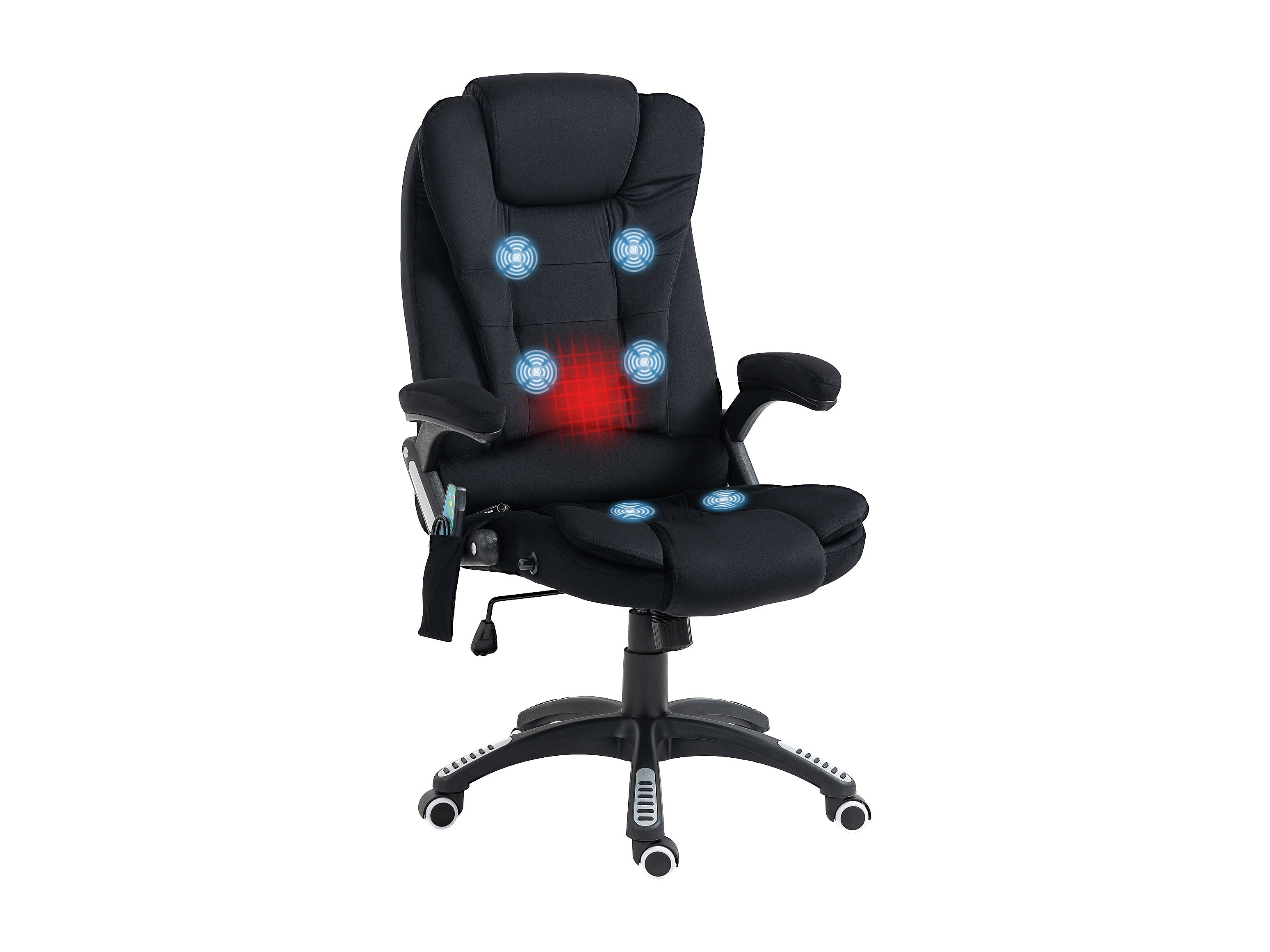 Ergonomische bureaustoel met massage en verwarming, in hoogte verstelbaar, directiestoel, belastbaar tot 120 kg, zwart