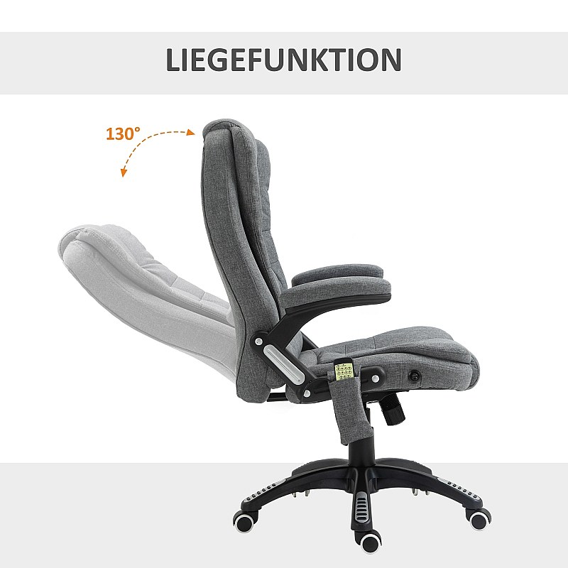 Ergonomische bureaustoel met massagefunctie, in hoogte verstelbaar, comfortabele directiestoel, grijs