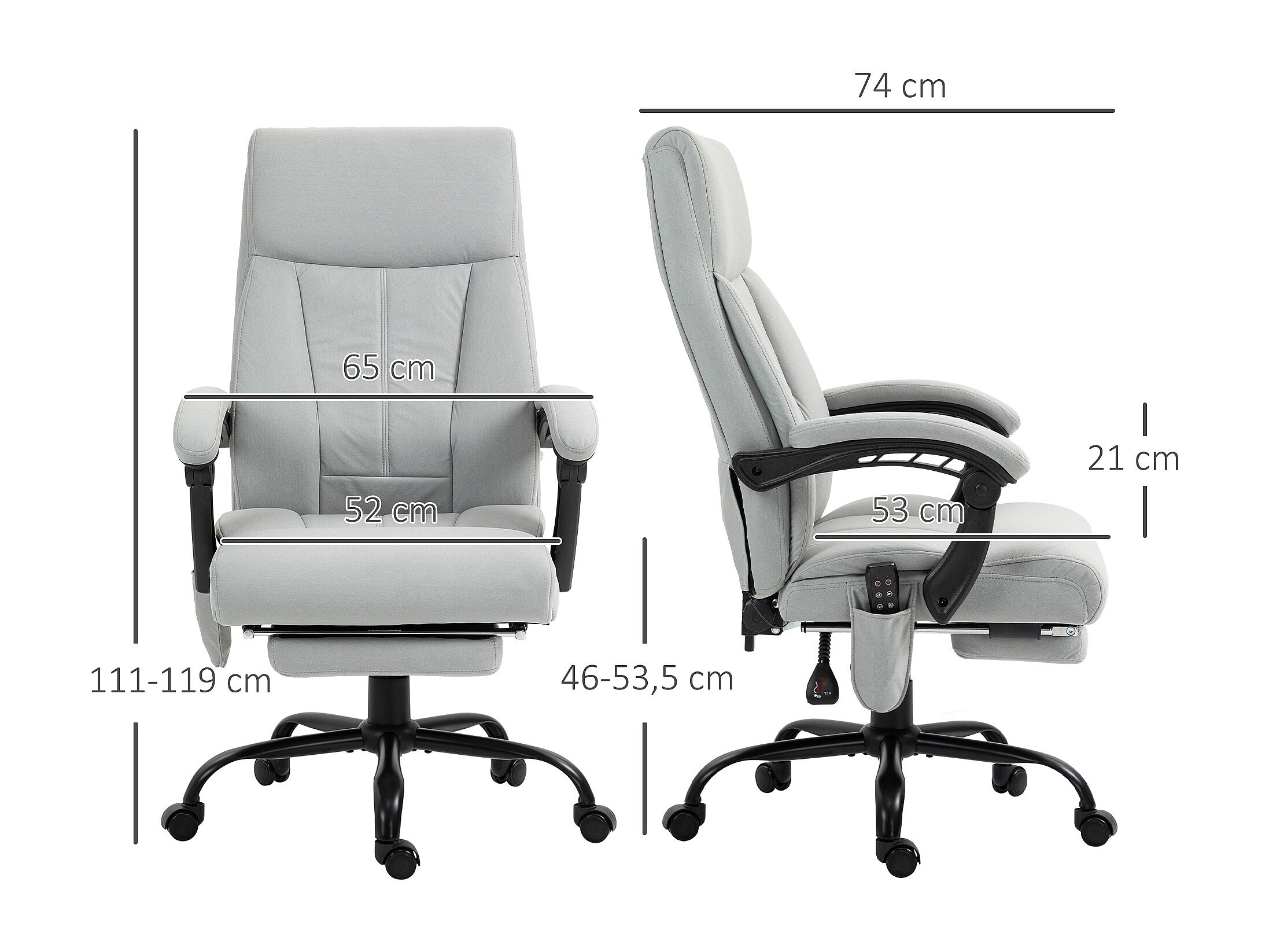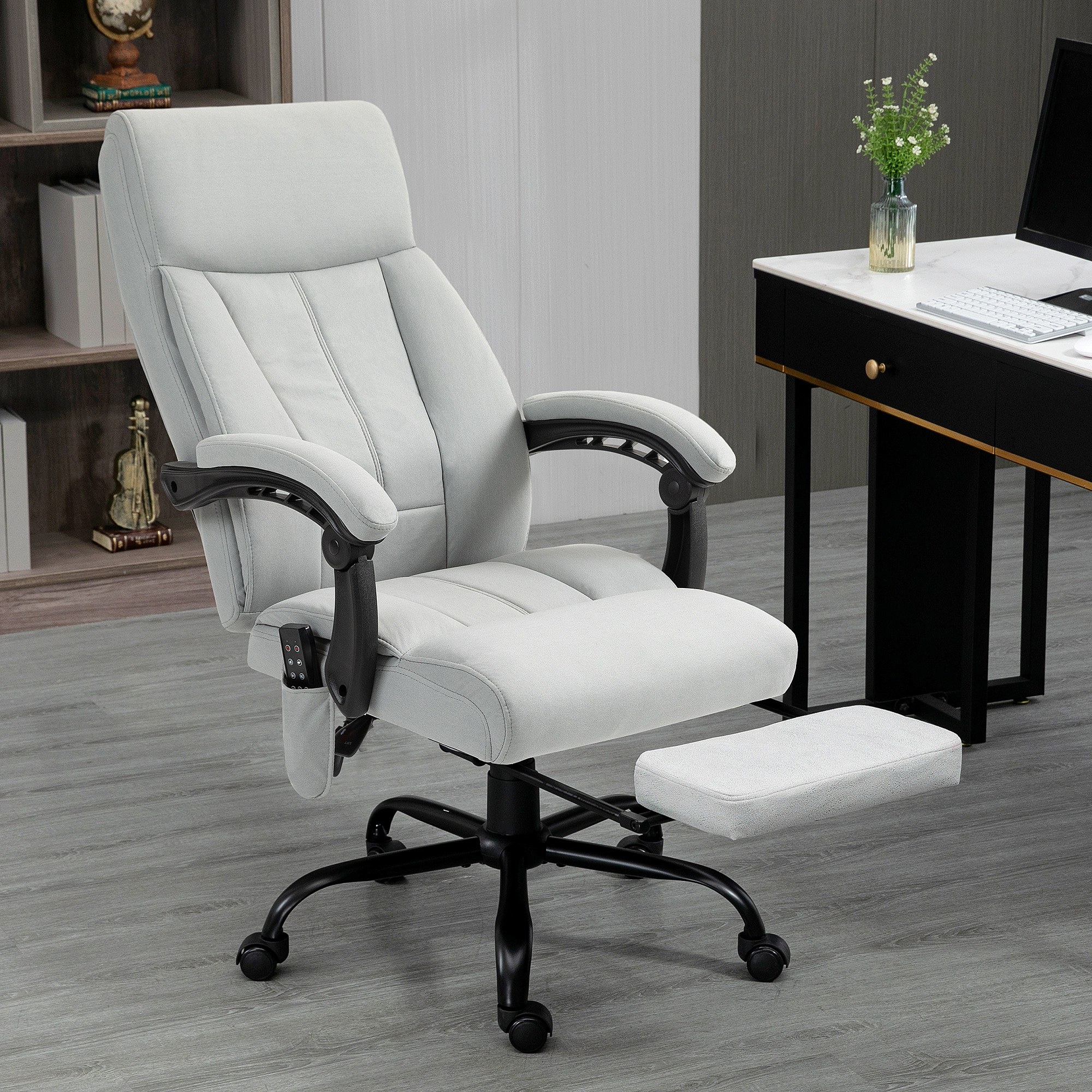 Ergonomische bureaustoel met massagefunctie, verstelbare voetensteun, comfortabele zitting, lichtgrijs, ideaal voor kantoor en thuiskantoor