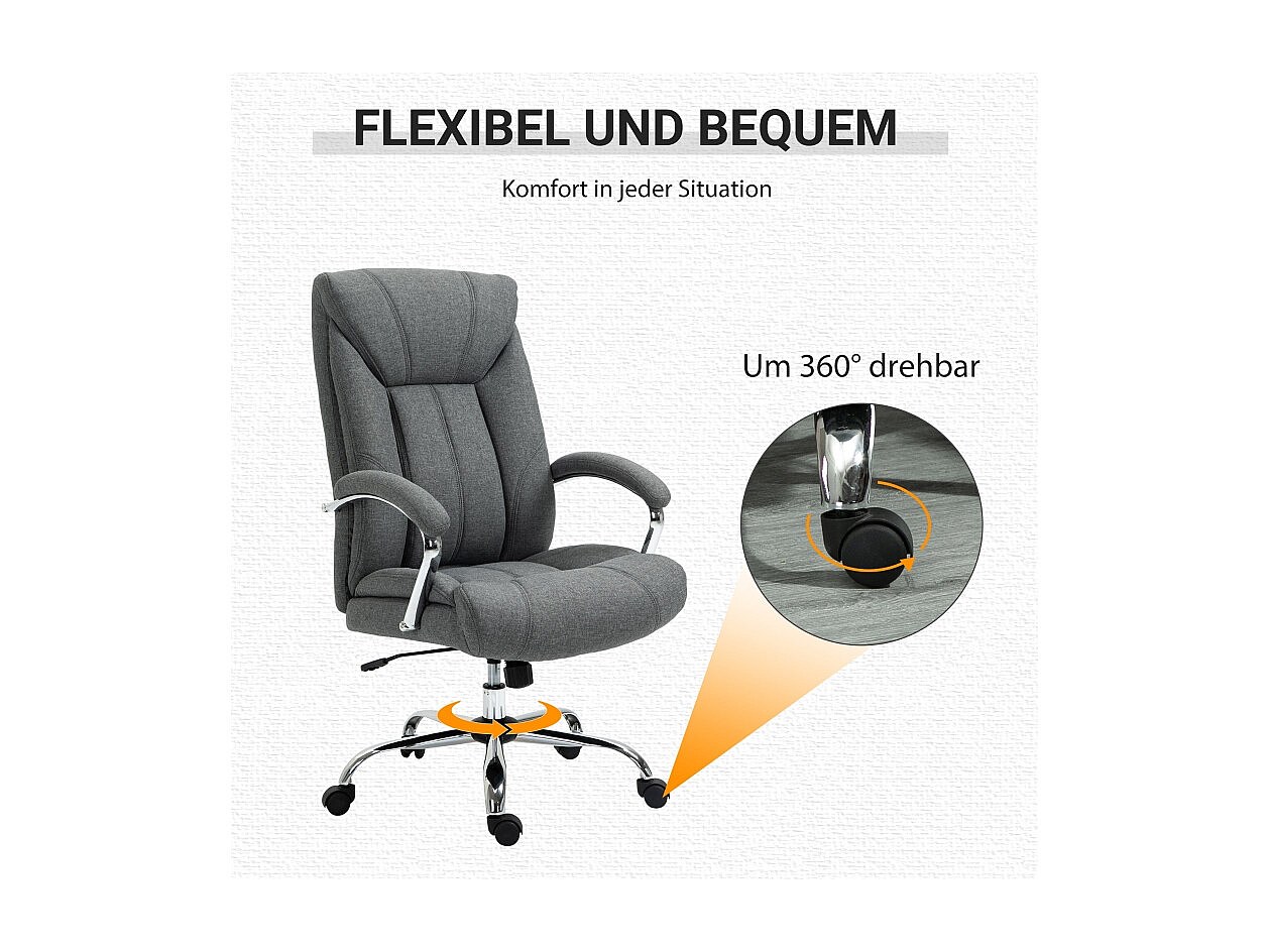 Ergonomische bureaustoel met schommelfunctie, gevoerde armleuningen en hoofdsteun, in hoogte verstelbaar, draaibaar, nylon, grijs,