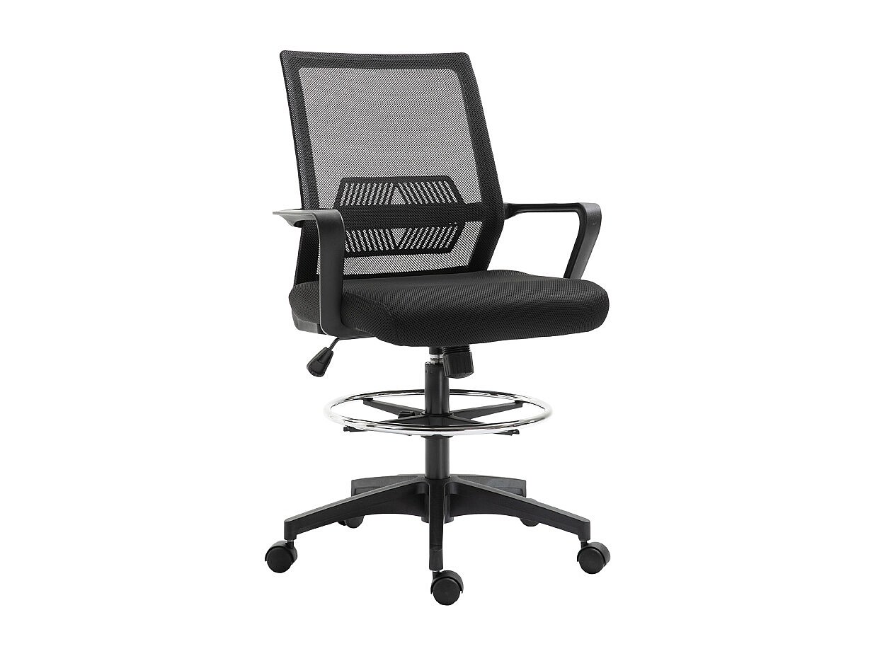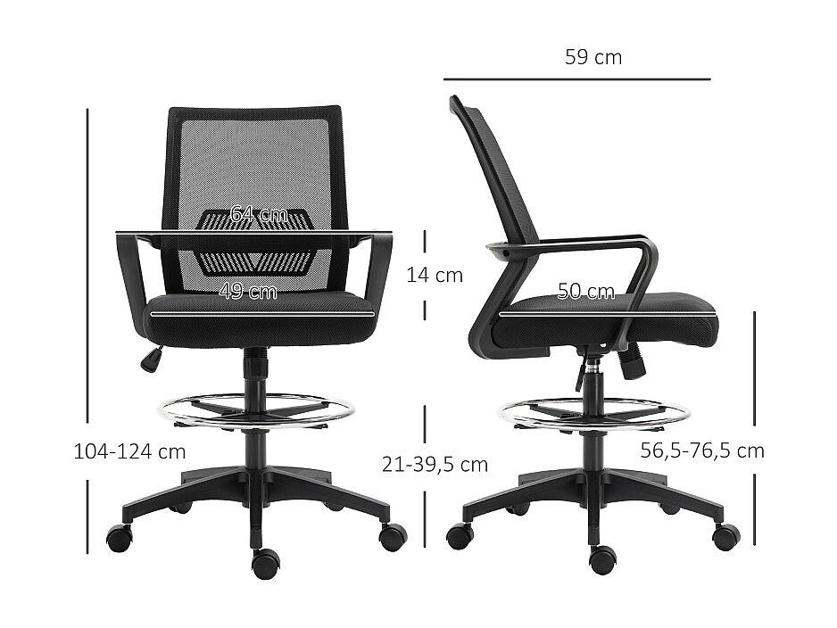 Ergonomische bureaustoel met verstelbare voetensteun, lendensteun, draaibaar, ademend gaas, schommelfunctie, zwarte computerstoel