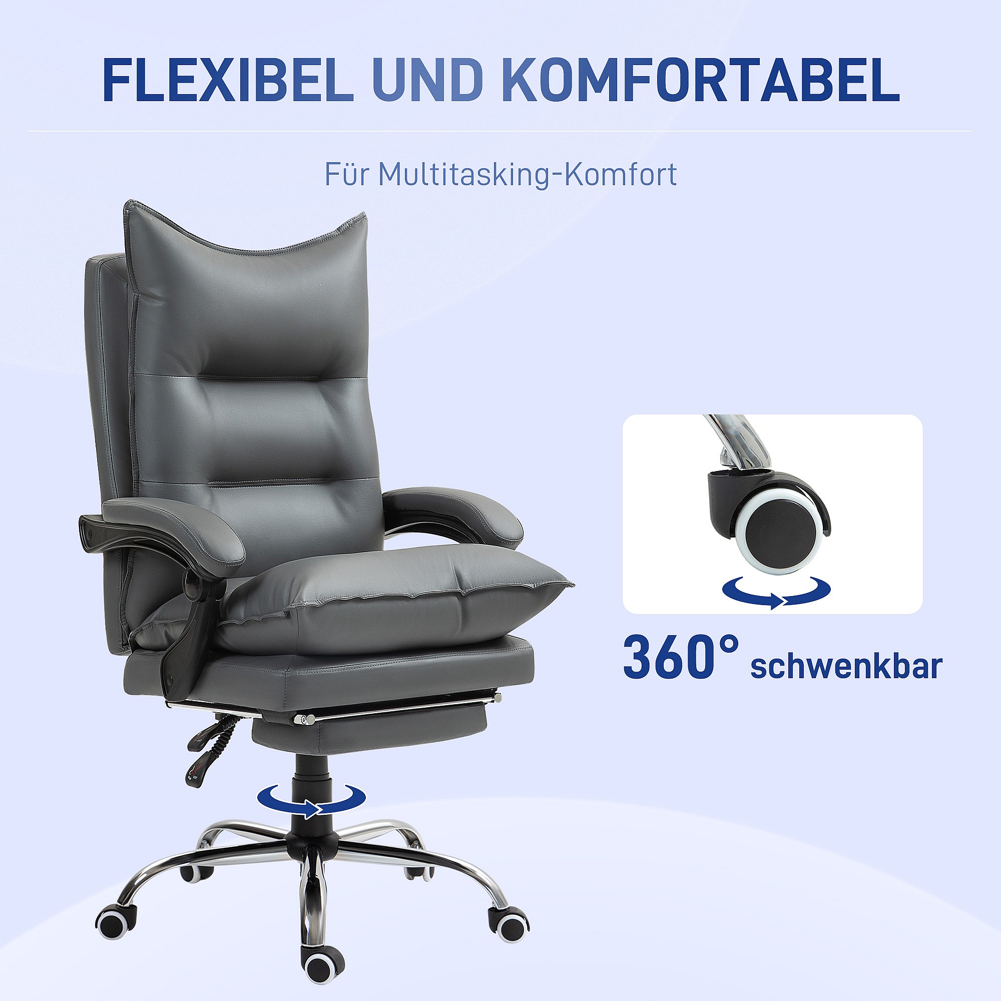 Ergonomische bureaustoel met voetensteun, in hoogte verstelbaar, gevoerde zitting, belastbaar tot 135 kg, grijs, ideaal voor op kantoor