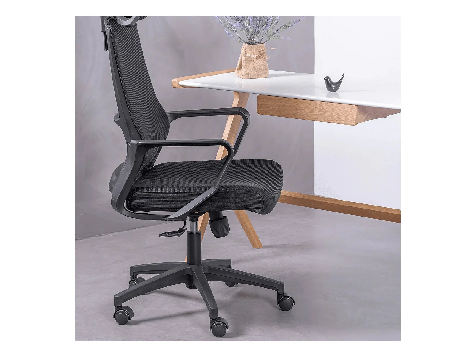 Ergonomische bureaustoel van ademend mesh met zwarte afwerking en verstelbare hoofdsteun - Mesh - Zwart