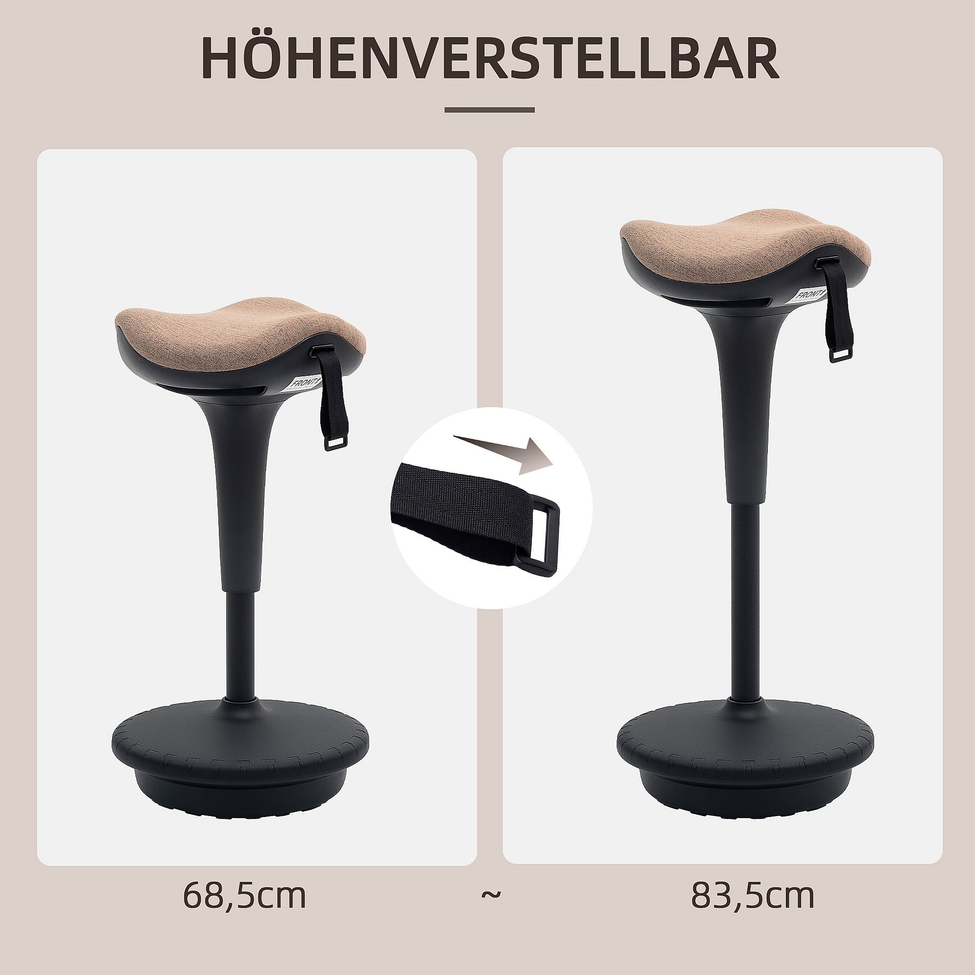 Ergonomische draaibare bureaustoel, in hoogte verstelbaar, 360° zitting, voor kantoor of studio, praktische hoge stoel, bruin