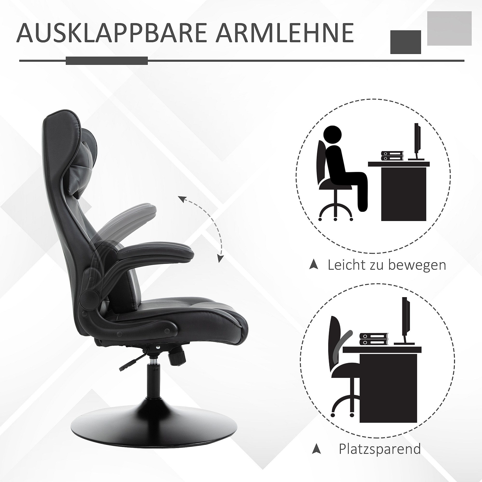 Ergonomische gamingstoel, in hoogte verstelbaar met schommelfunctie, zwarte gewatteerde zitting, ideaal voor kantoor en thuiskantoor