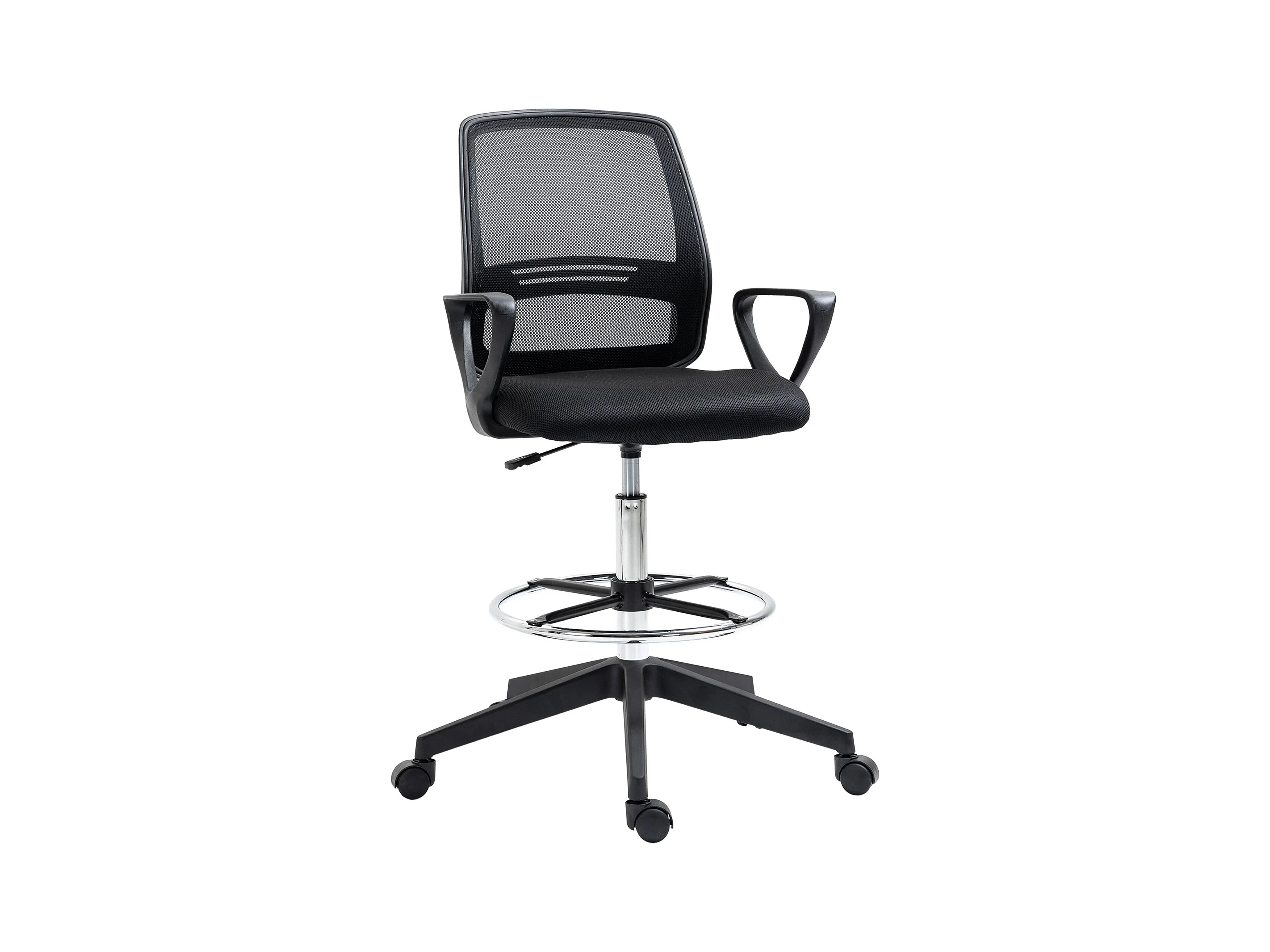 Ergonomische sta-kruk, in hoogte verstelbaar met voetensteun, metaal en zwart kunststof (59,5 x 60 x 102,5-126 cm)