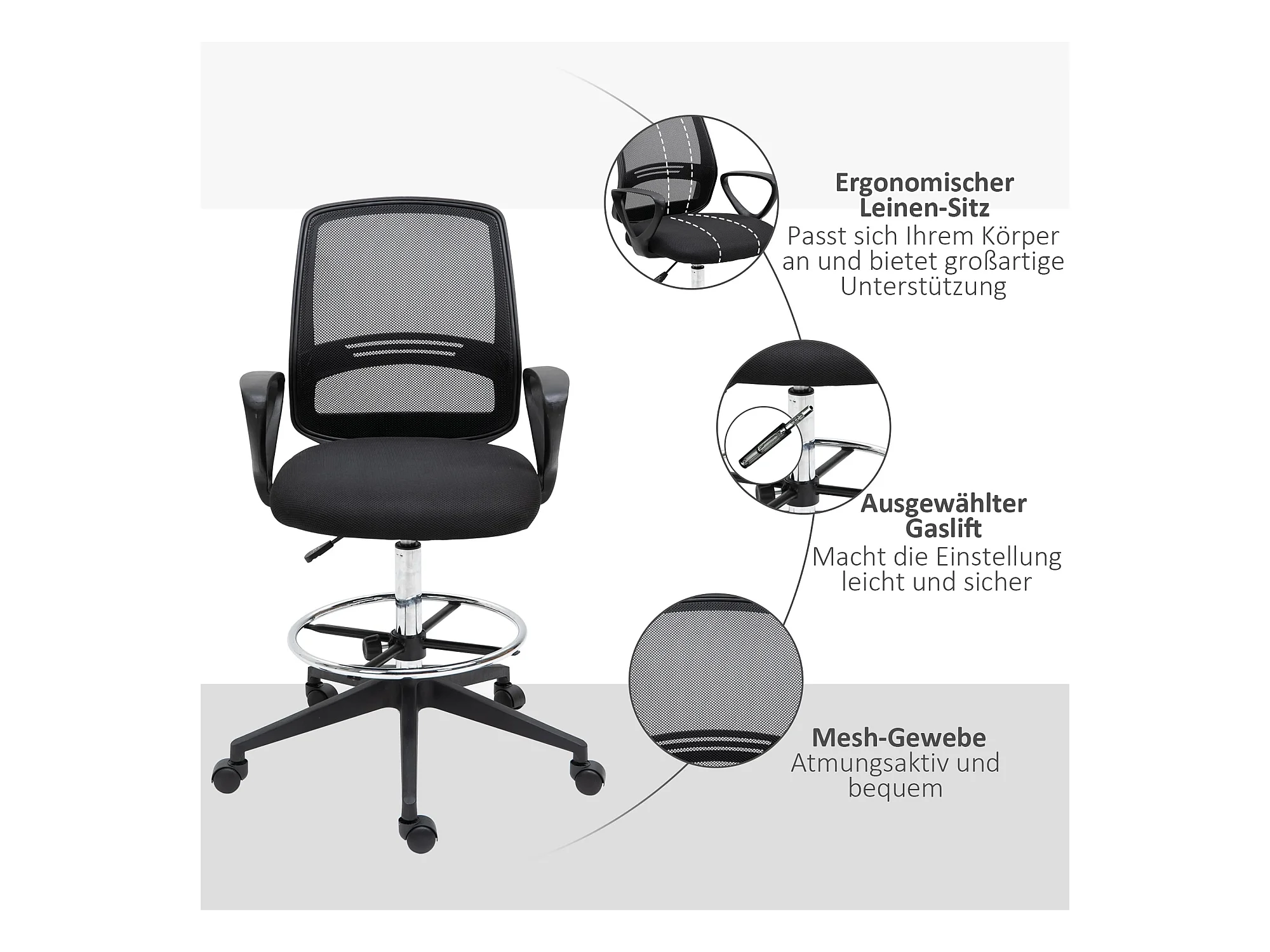 Ergonomische sta-stoel, in hoogte verstelbaar, met voetenbank, zwart, (59x61x93-113 cm) ###