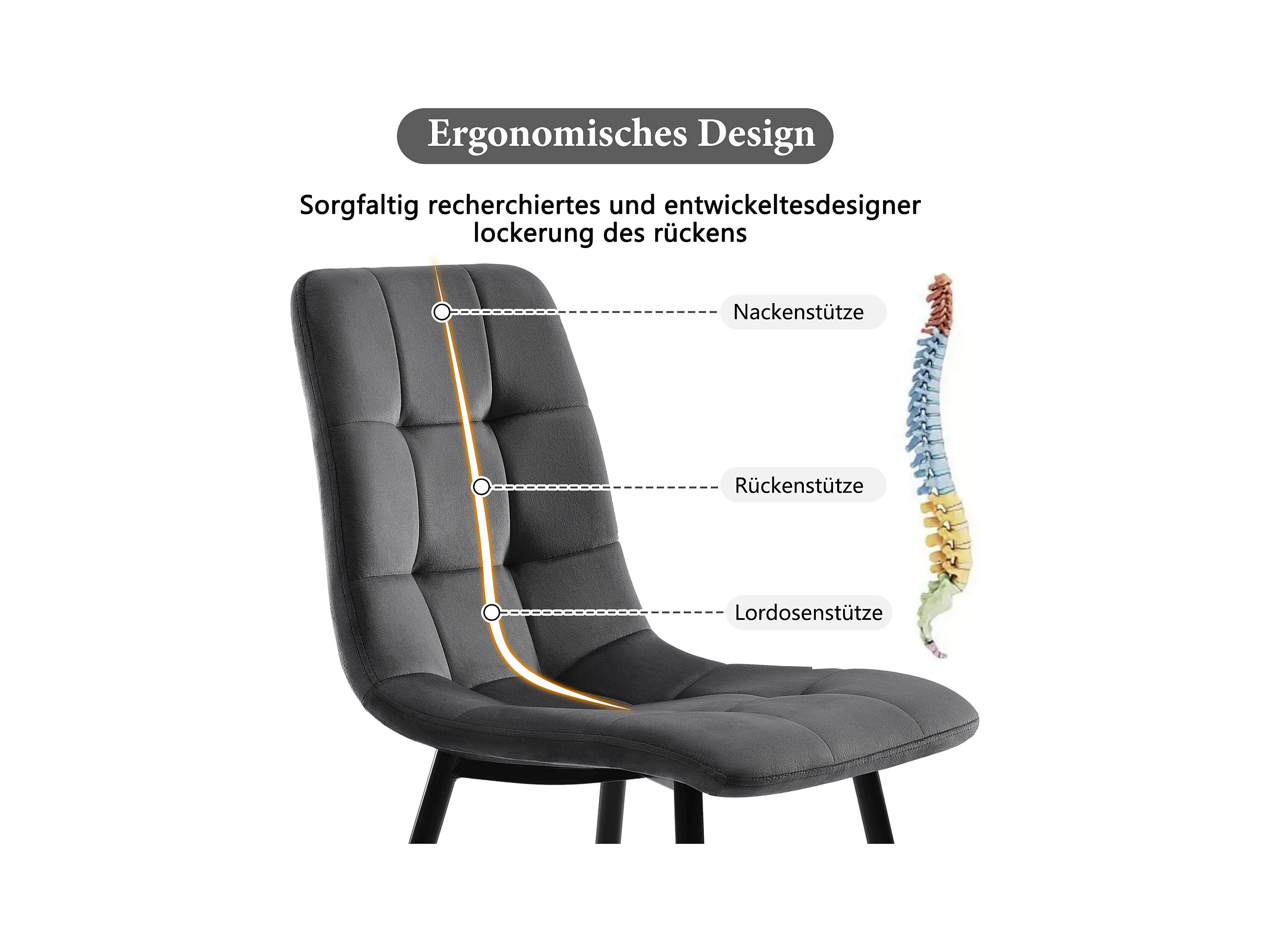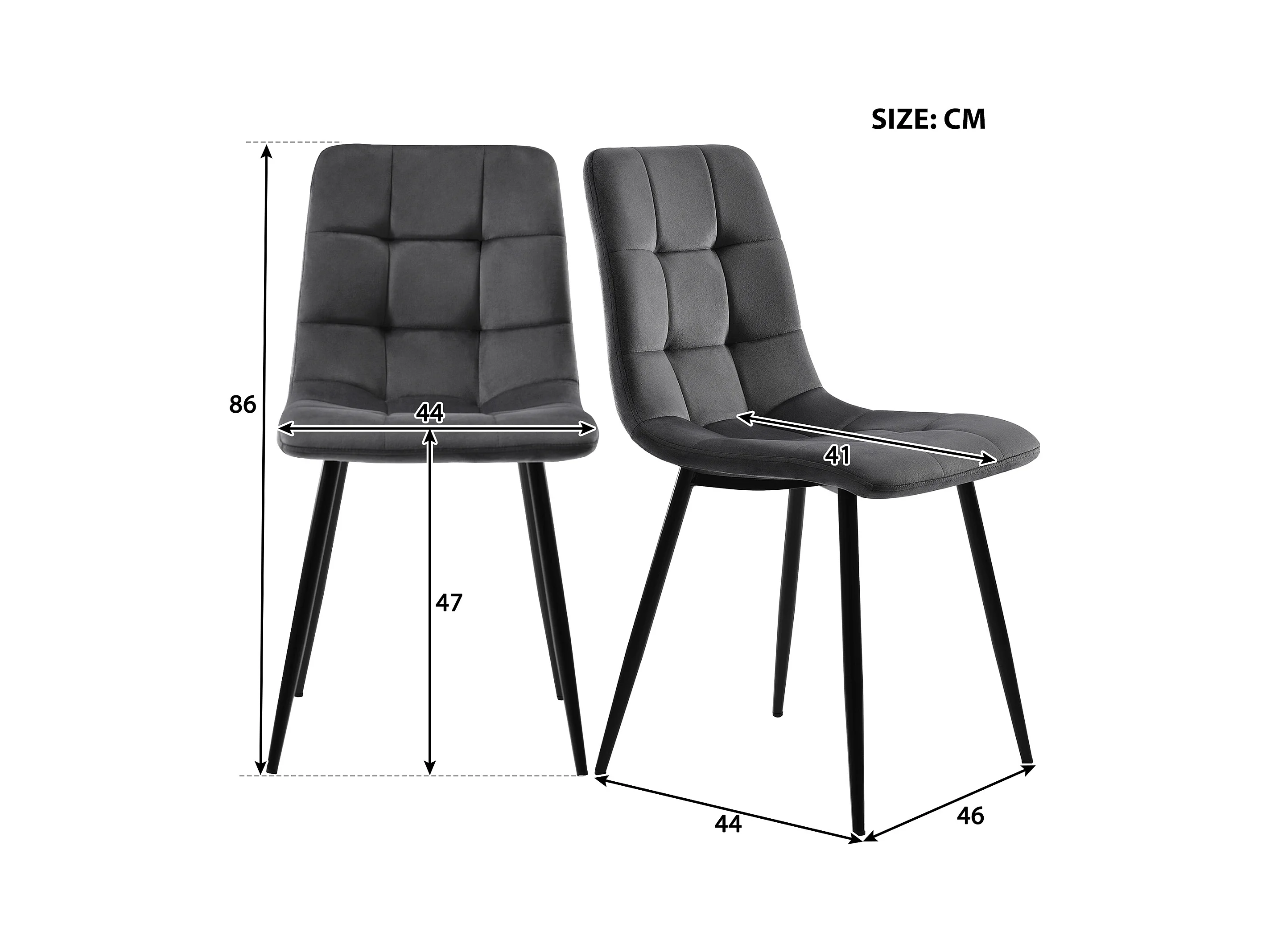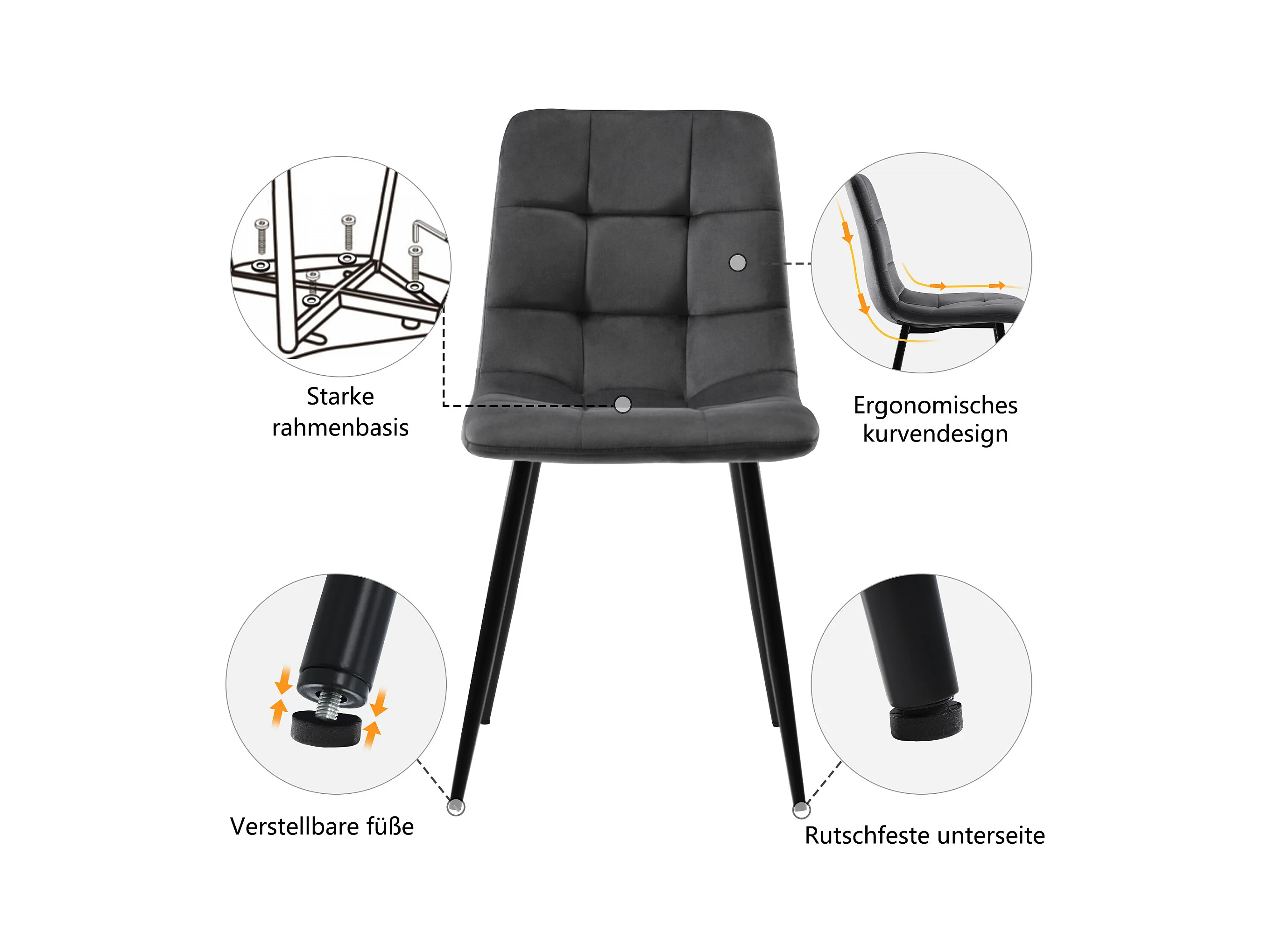 Tafel- en stoelenset (5 stuks), metallic design met 4 stoelen in grijs fluweel, MDF, zwart en grijs (140x80x75 cm)