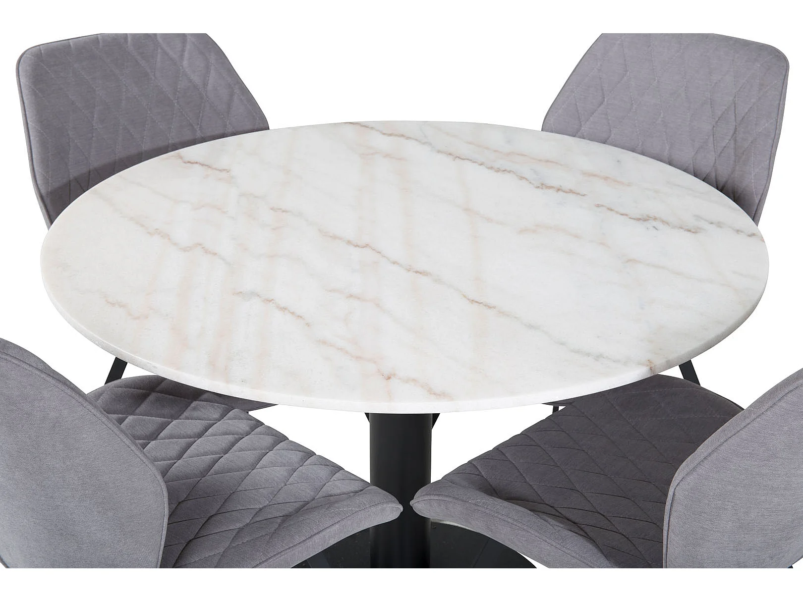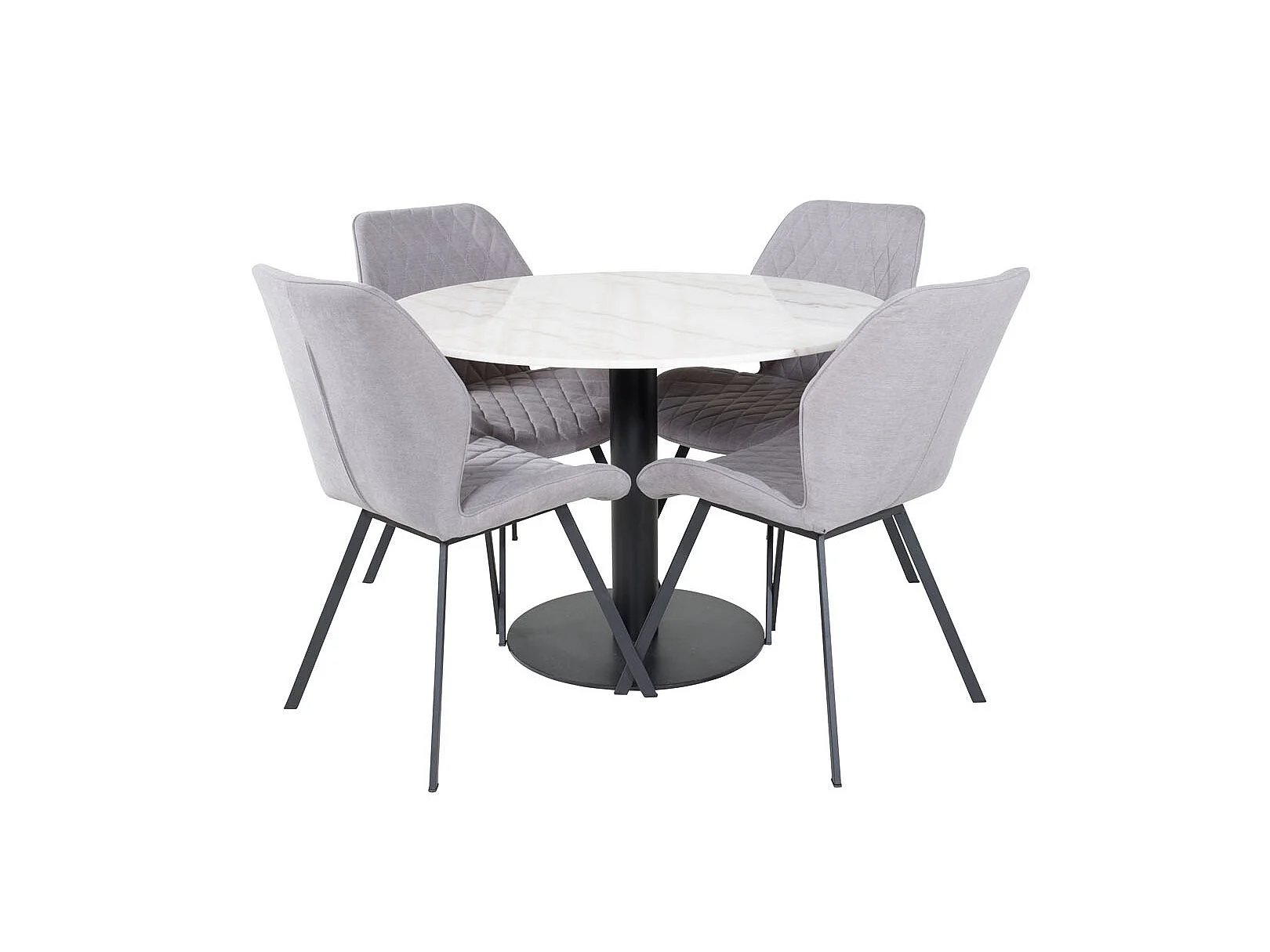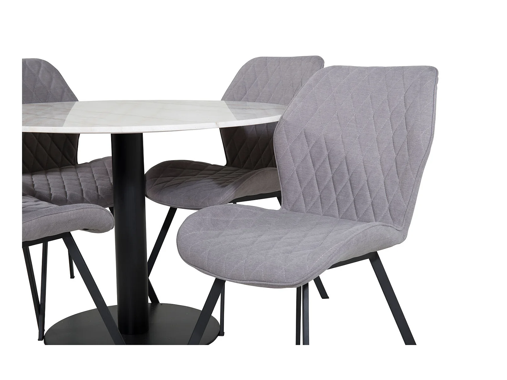 EstelleØ106WHBL eethoek eetkamertafel wit, marmer en 4 Gemma eetkamerstal grijs.