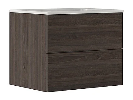 Etherische Badkamerkast, Donker Eikenhout Afwerking, 2 Lades En Centrale Wastafel
