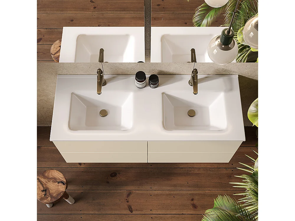 Etherische Badkamerkast, Dove-Grijs Afwerking, 4 Lades En Een Dubbele Wastafel